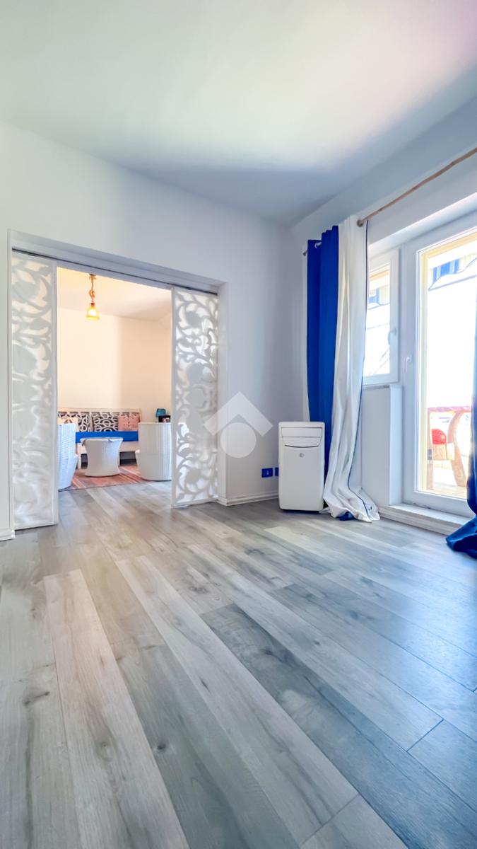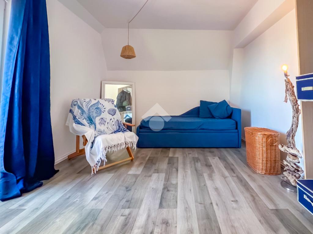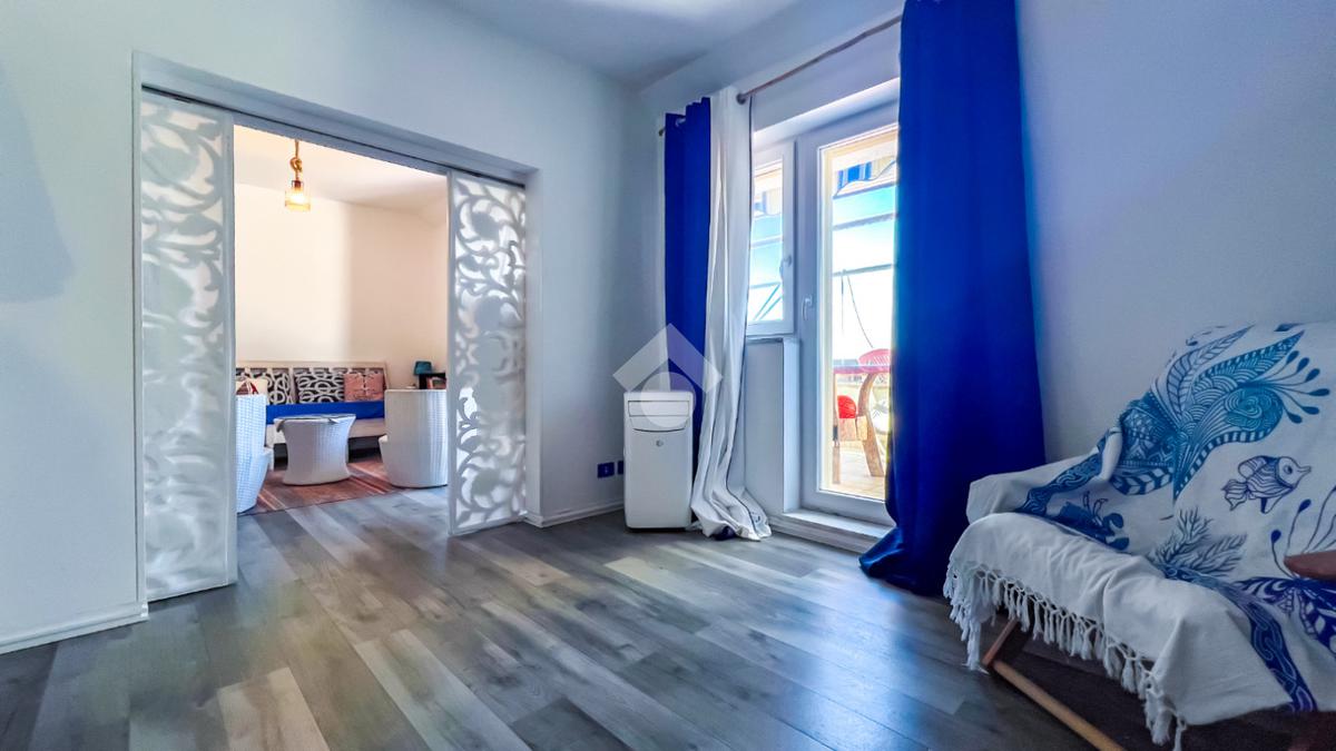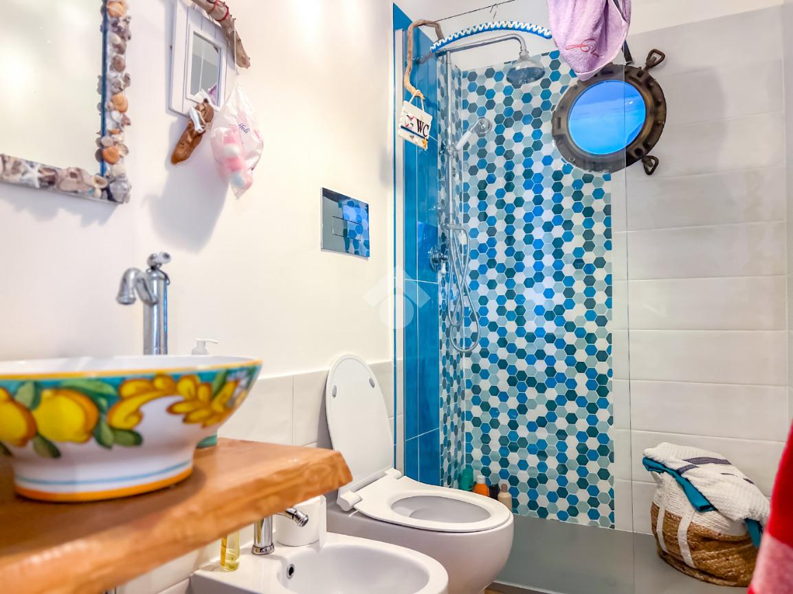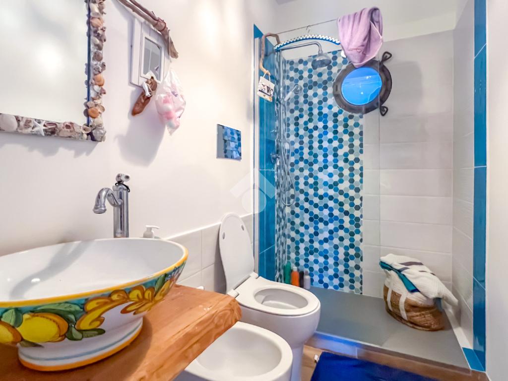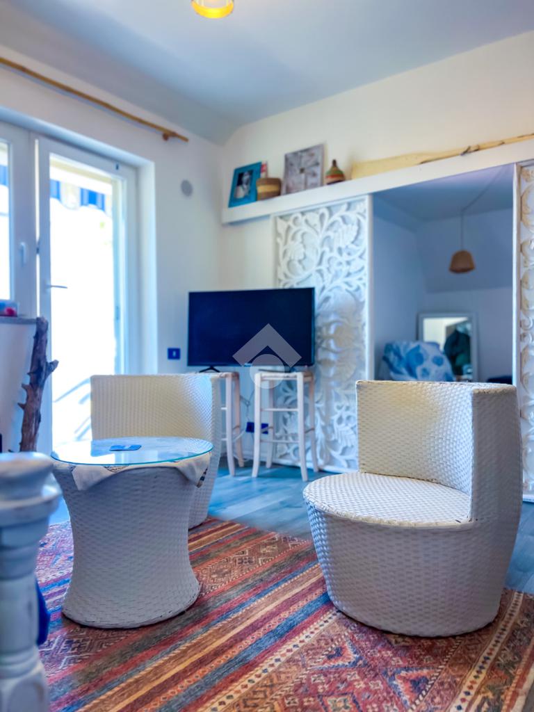 L’immobile, completamente ristrutturato, si apre su una accogliente zona giorno con angolo cottura, ben organizzata e funzionale, dalla quale si accede sia a una splendida terrazza vista mare che a un balcone, ideali per momenti di relax all’aperto.