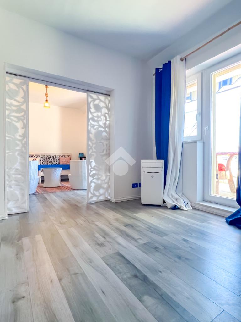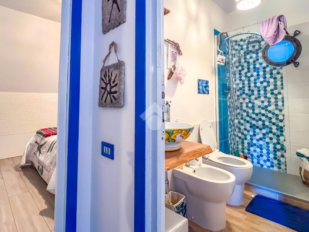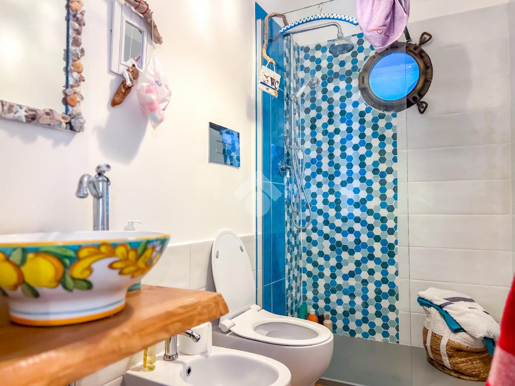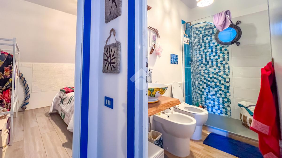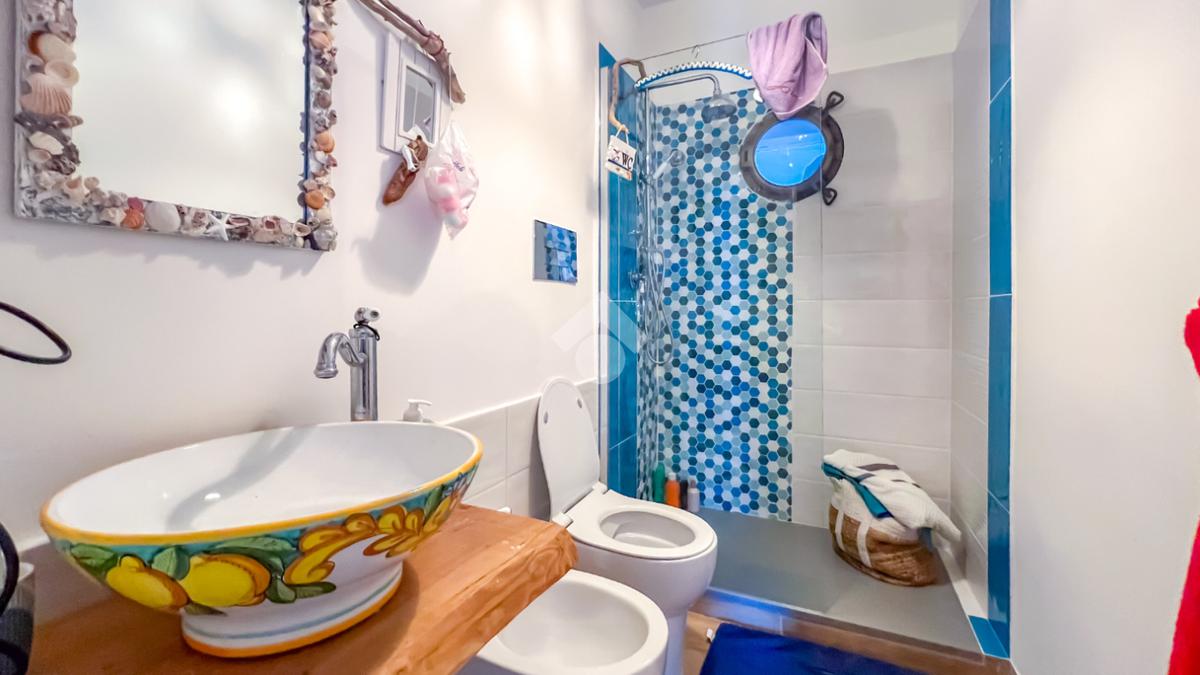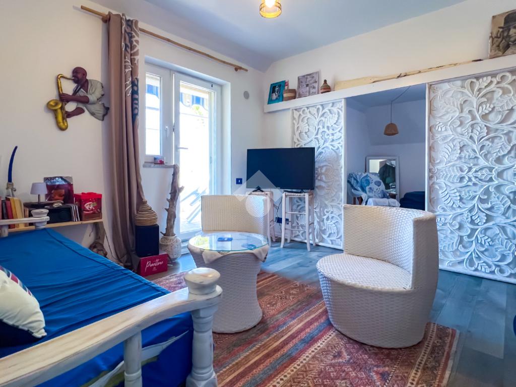 L’immobile, completamente ristrutturato, si apre su una accogliente zona giorno con angolo cottura, ben organizzata e funzionale, dalla quale si accede sia a una splendida terrazza vista mare che a un balcone, ideali per momenti di relax all’aperto.