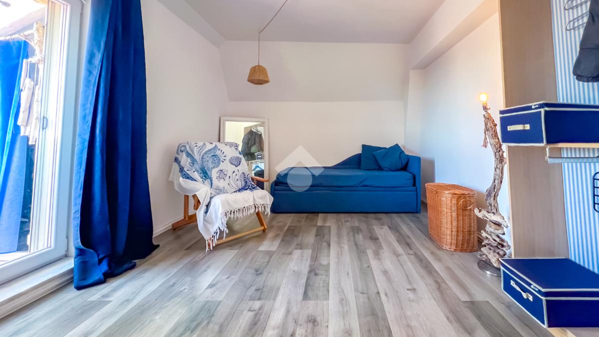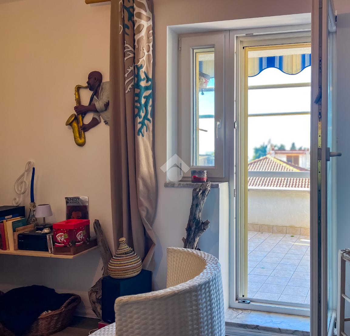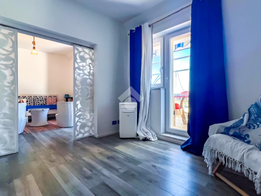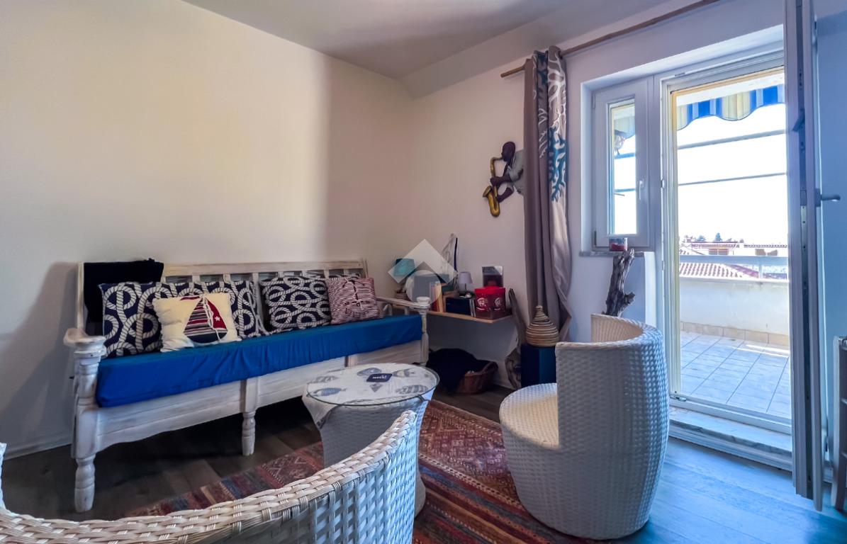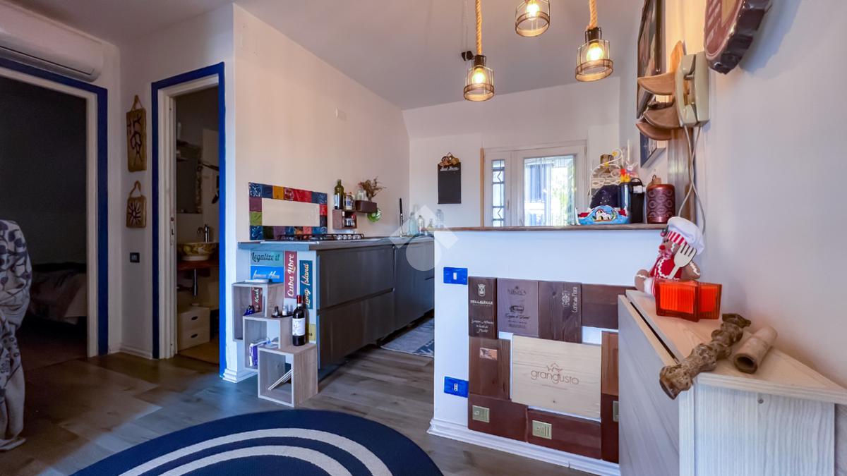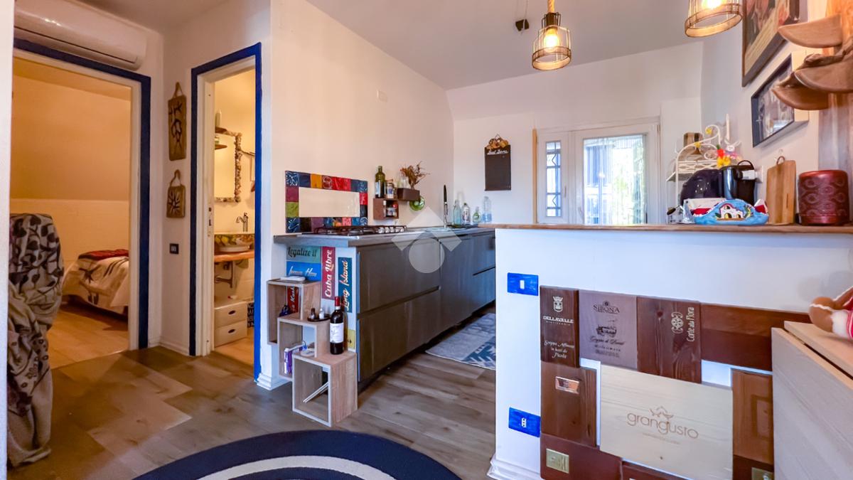L’immobile, completamente ristrutturato, si apre su una accogliente zona giorno con angolo cottura, ben organizzata e funzionale, dalla quale si accede sia a una splendida terrazza vista mare che a un balcone, ideali per momenti di relax all’aperto.
