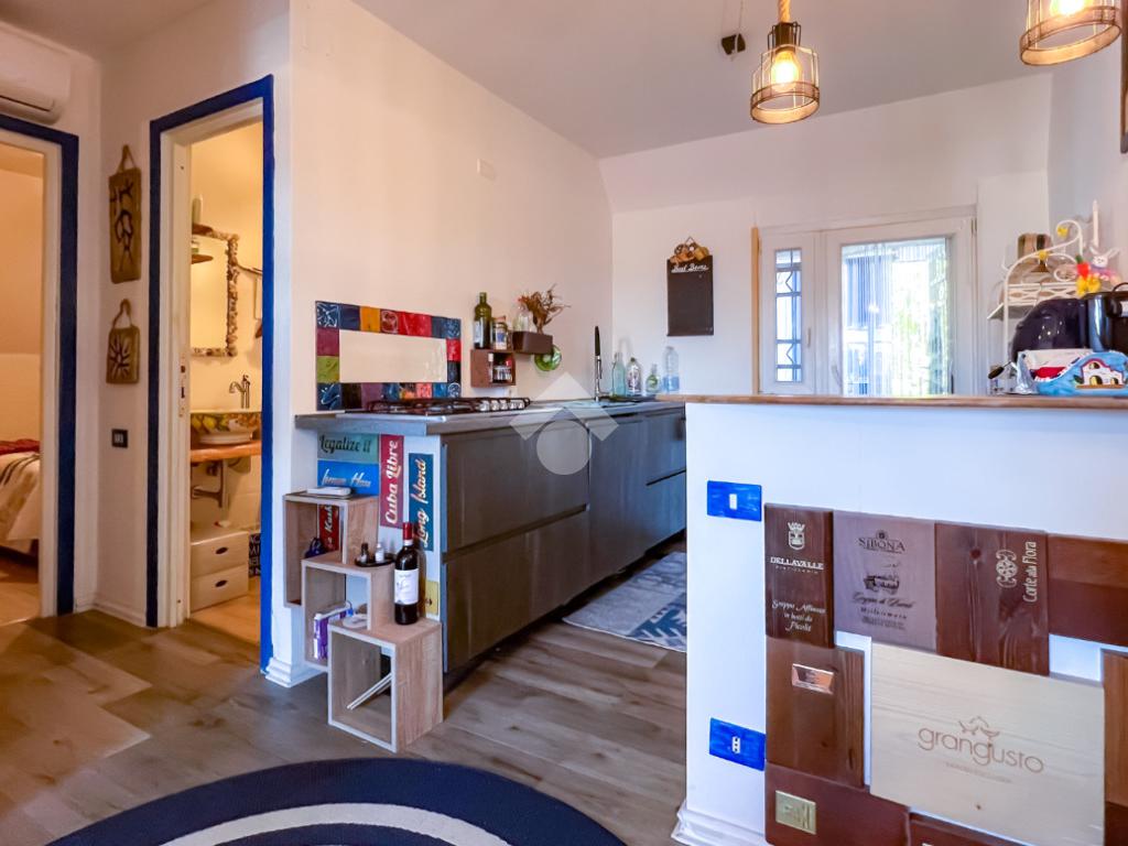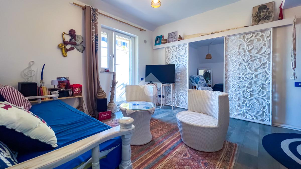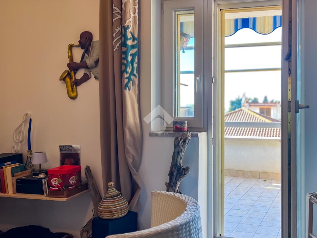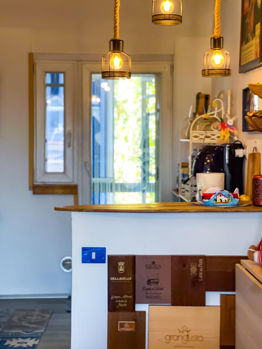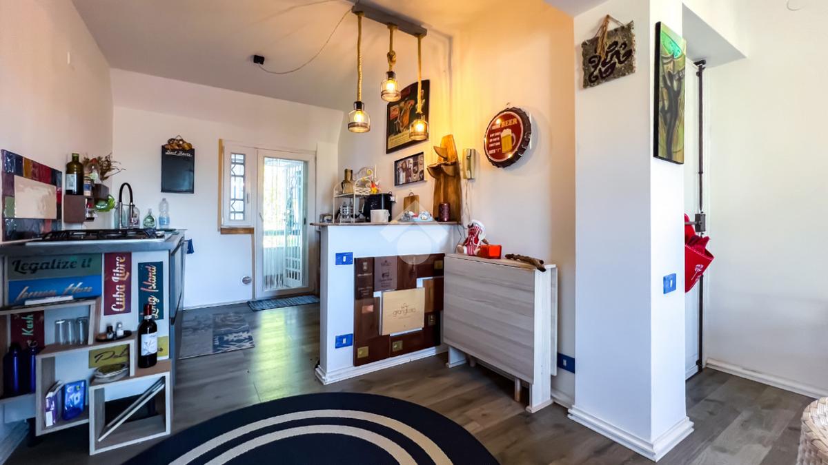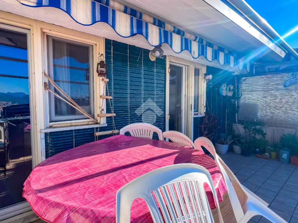 L’immobile, completamente ristrutturato, si apre su una accogliente zona giorno con angolo cottura, ben organizzata e funzionale, dalla quale si accede sia a una splendida terrazza vista mare che a un balcone, ideali per momenti di relax all’aperto.