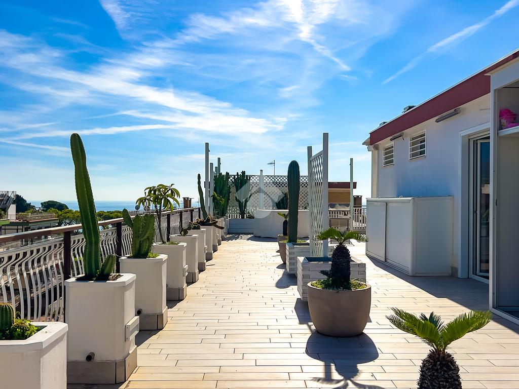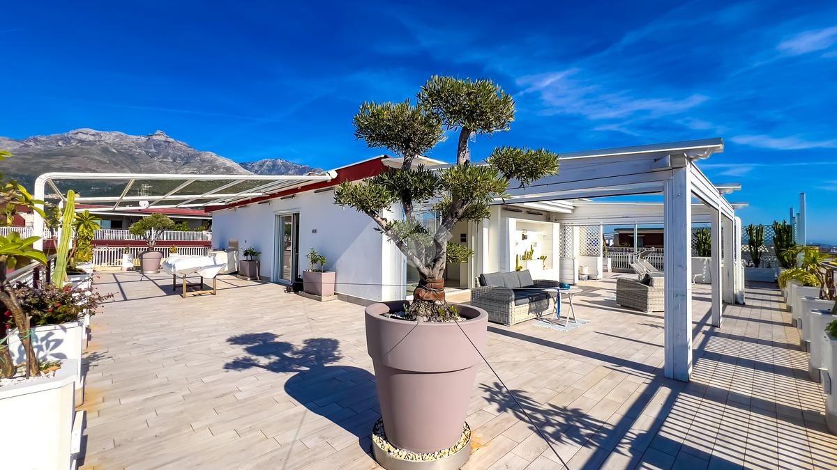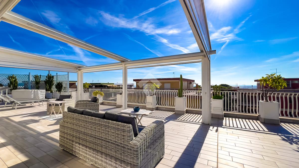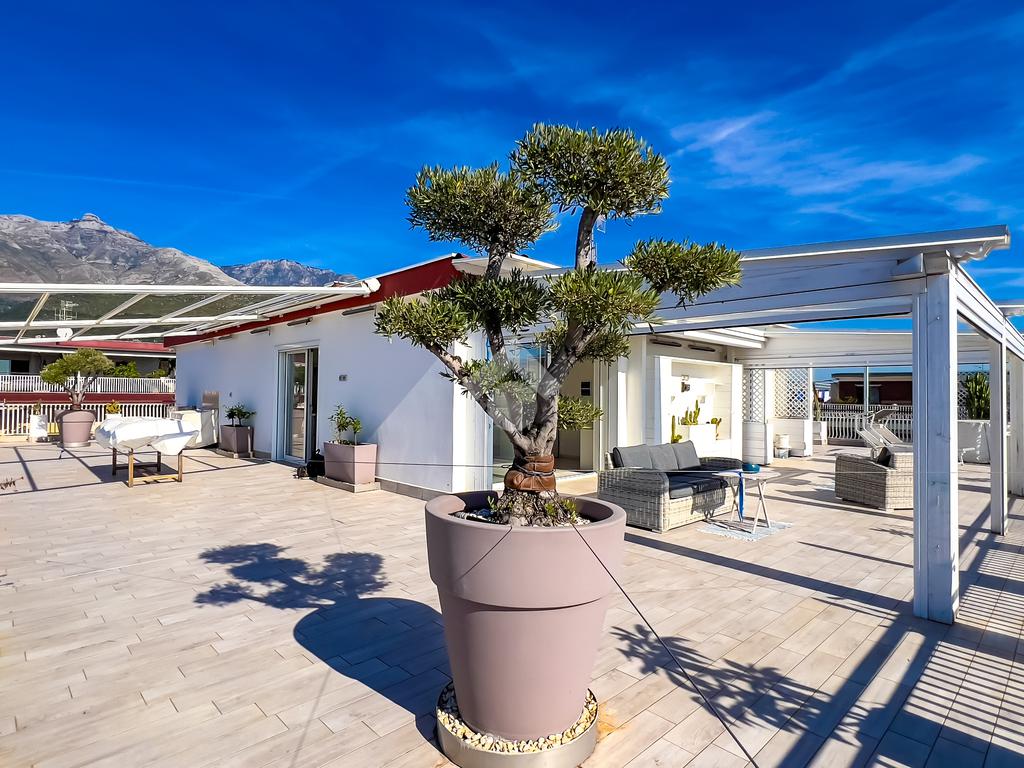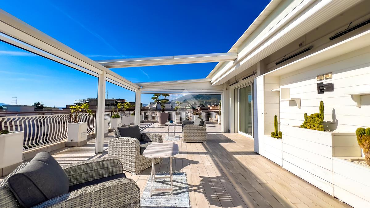 Il vero fiore all'occhiello di questa proprietà è il terrazzo panoramico di 230 mq, che circonda l'intero appartamento e offre una vista aperta sulla città. Questo ampio spazio esterno è il luogo ideale per godersi momenti di relax, pranzi all'aperto o semplicemente ammirare il panorama. La pavimentazione esterna, recentemente rinnovata, è dotata di impianto di irrigazione sotto il pavimento per garantire la cura ottimale delle piante. Inoltre, la jacuzzi autonoma e le due pergotende, una esposta a sud e l'altra a ovest, sono dotate di chiusura elettrica a distanza, permettendo di vivere l'area esterna in ogni stagione, anche in caso di pioggia. Una delle pergotende crea un elegante salone esterno, completo di ogni comfort, dove trascorrere piacevoli serate all'aria aperta, in totale relax.