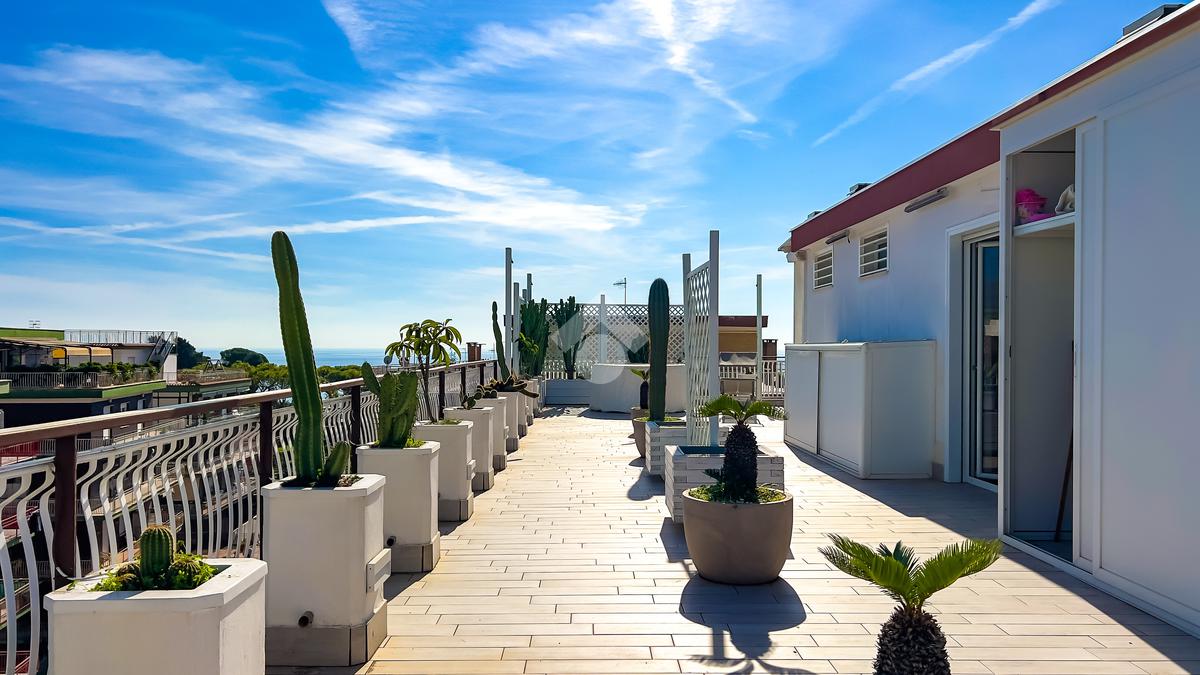 L'attico si sviluppa su 90 mq interni ben distribuiti e include tre camere da letto, tre bagni (di cui due en suite), studiati per garantire la massima privacy e funzionalità. Ogni ambiente è dotato di condizionatori e infissi in doppio vetro con taglio termico, garantendo un perfetto isolamento termico e acustico, mentre le grandi vetrate permettono alla luce naturale di inondare ogni stanza, creando un'atmosfera accogliente e rilassante.