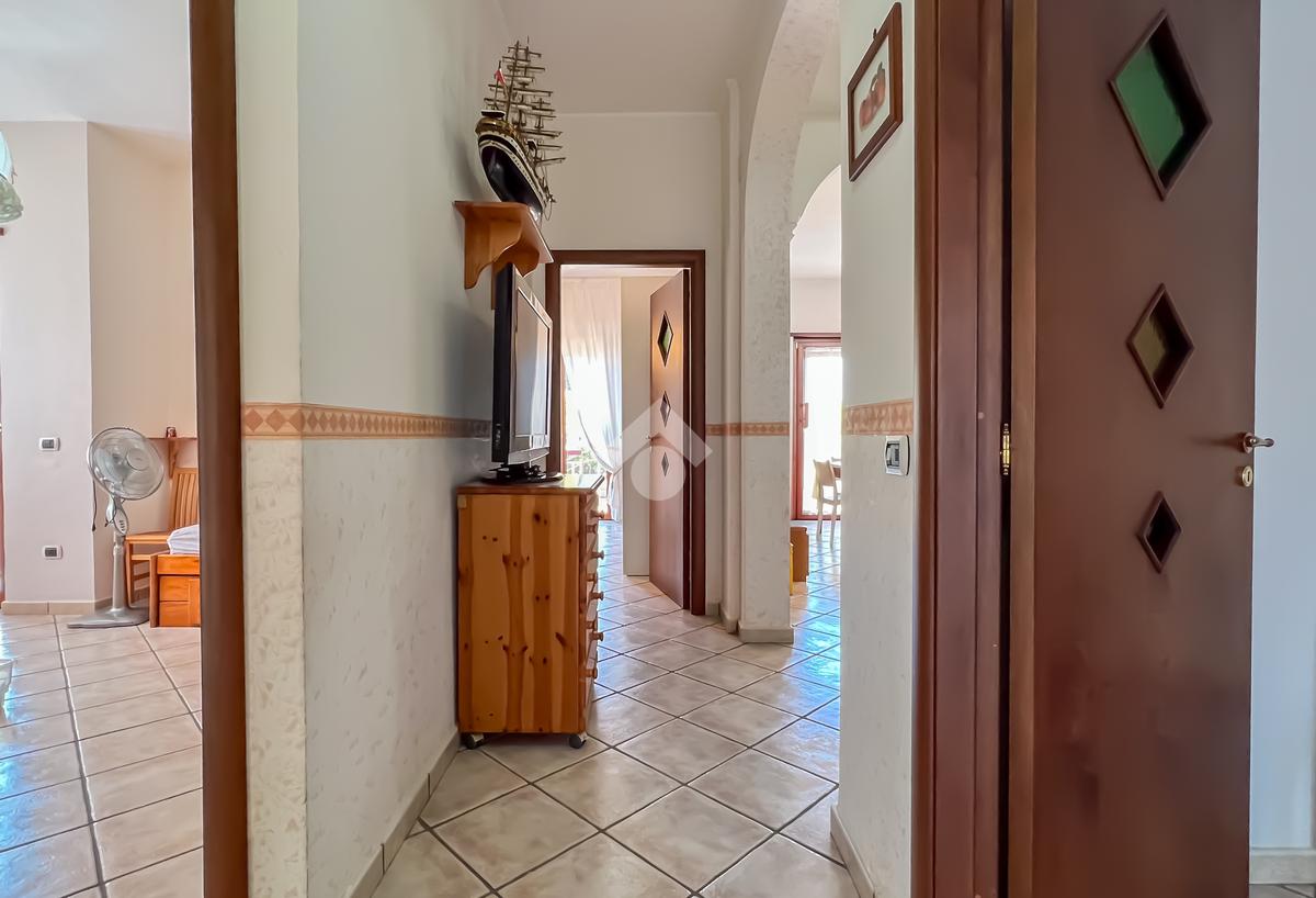 Internamente si compone di un ampio soggiorno con angolo cottura, quattro camere da letto (una matrimoniale e tre camerette), due bagni finestrati, uno con vasca e l’altro con box doccia.