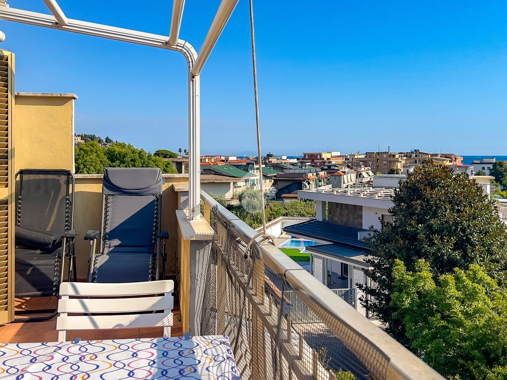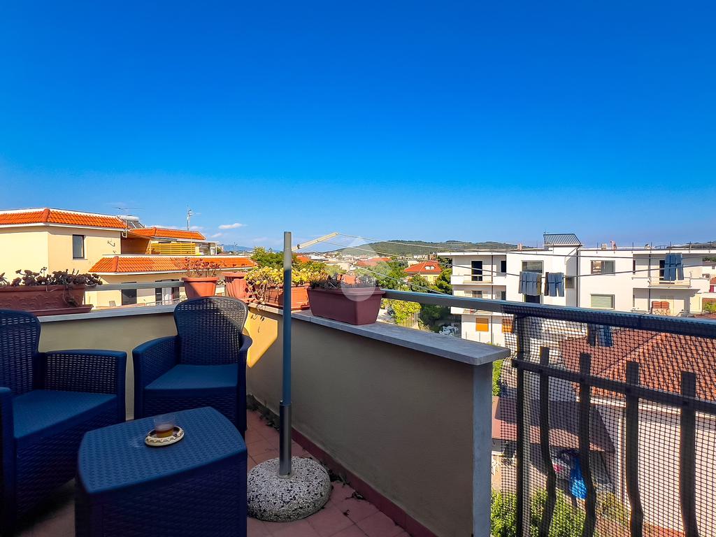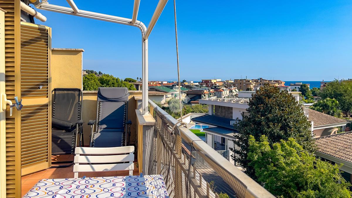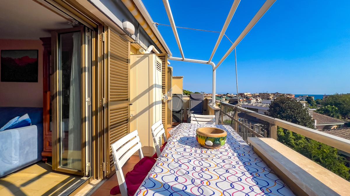 Completano la proprietà un terrazzo luminoso con vista mare e un posto auto assegnato.