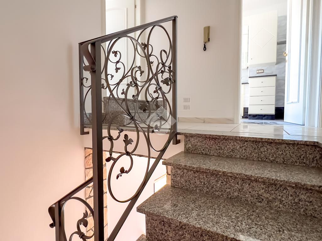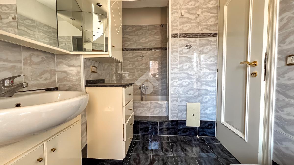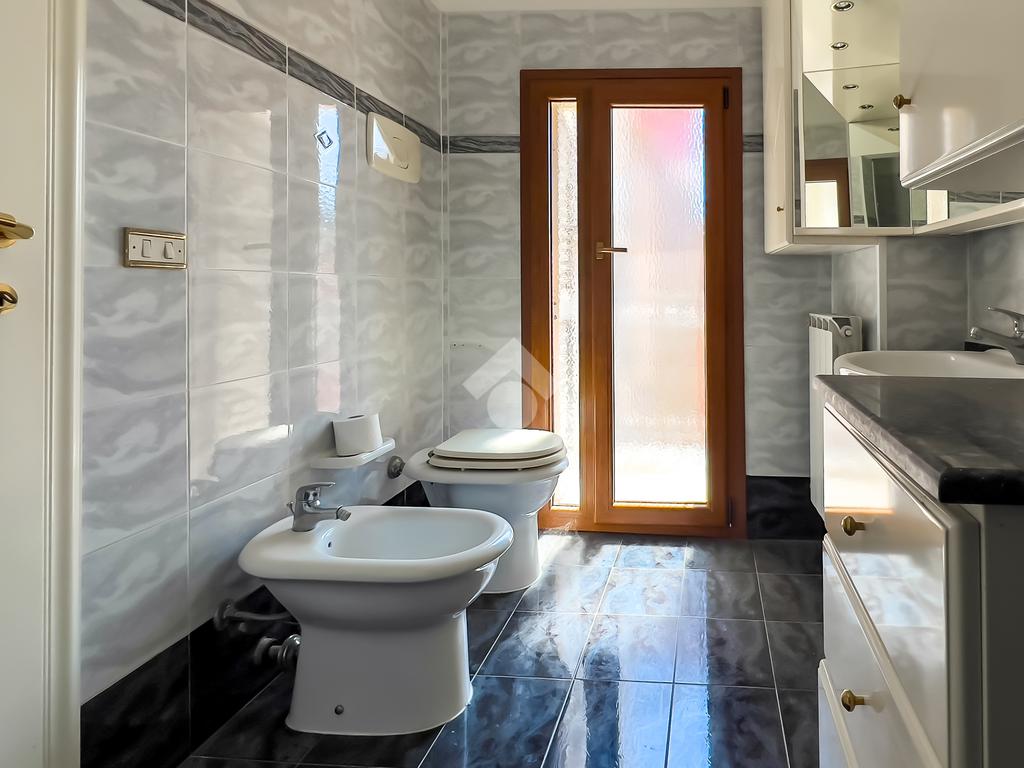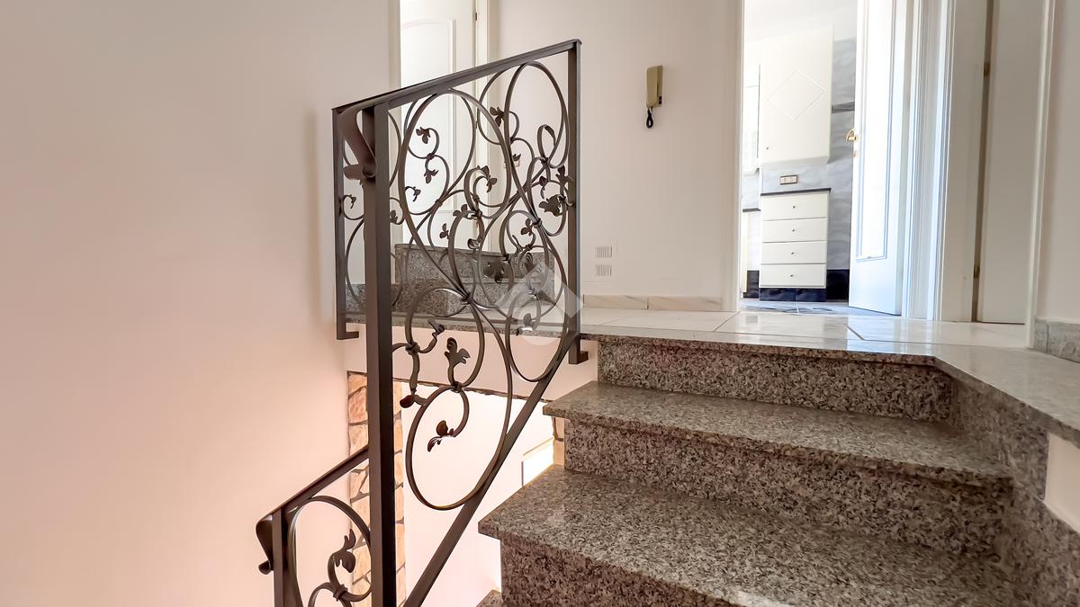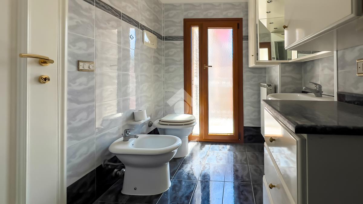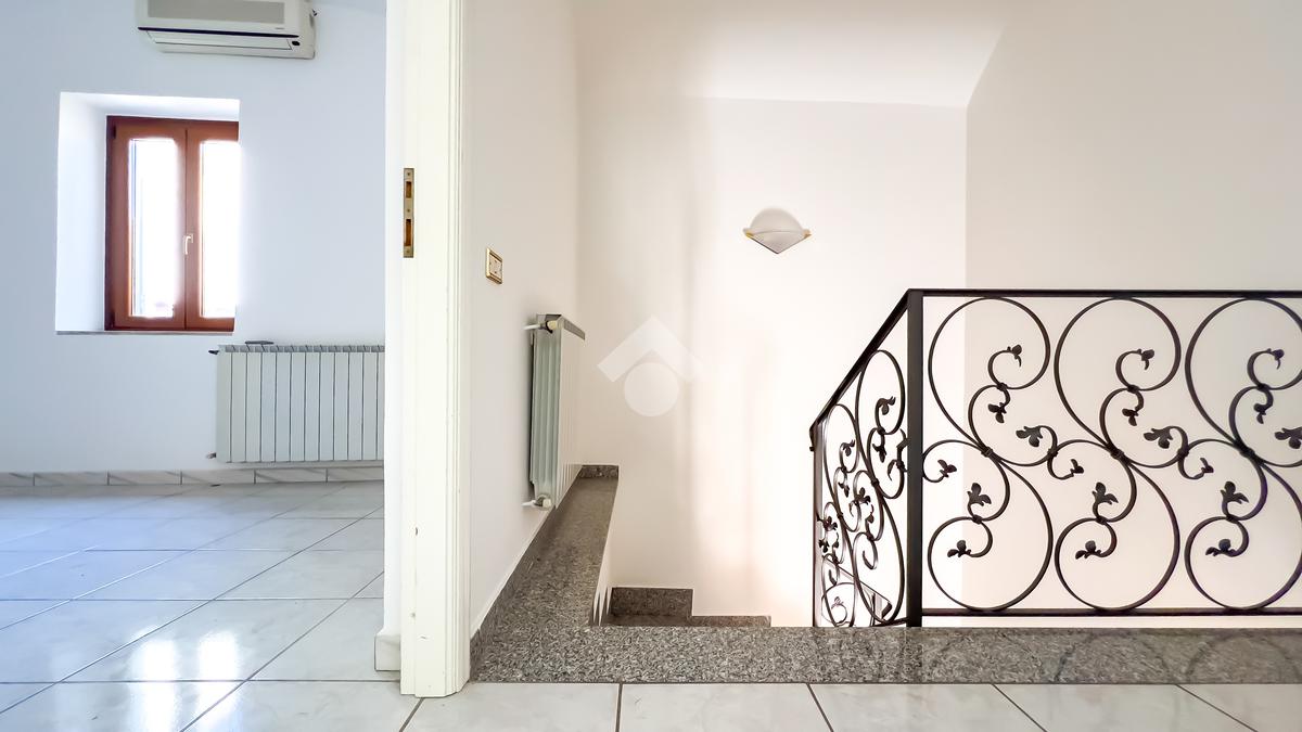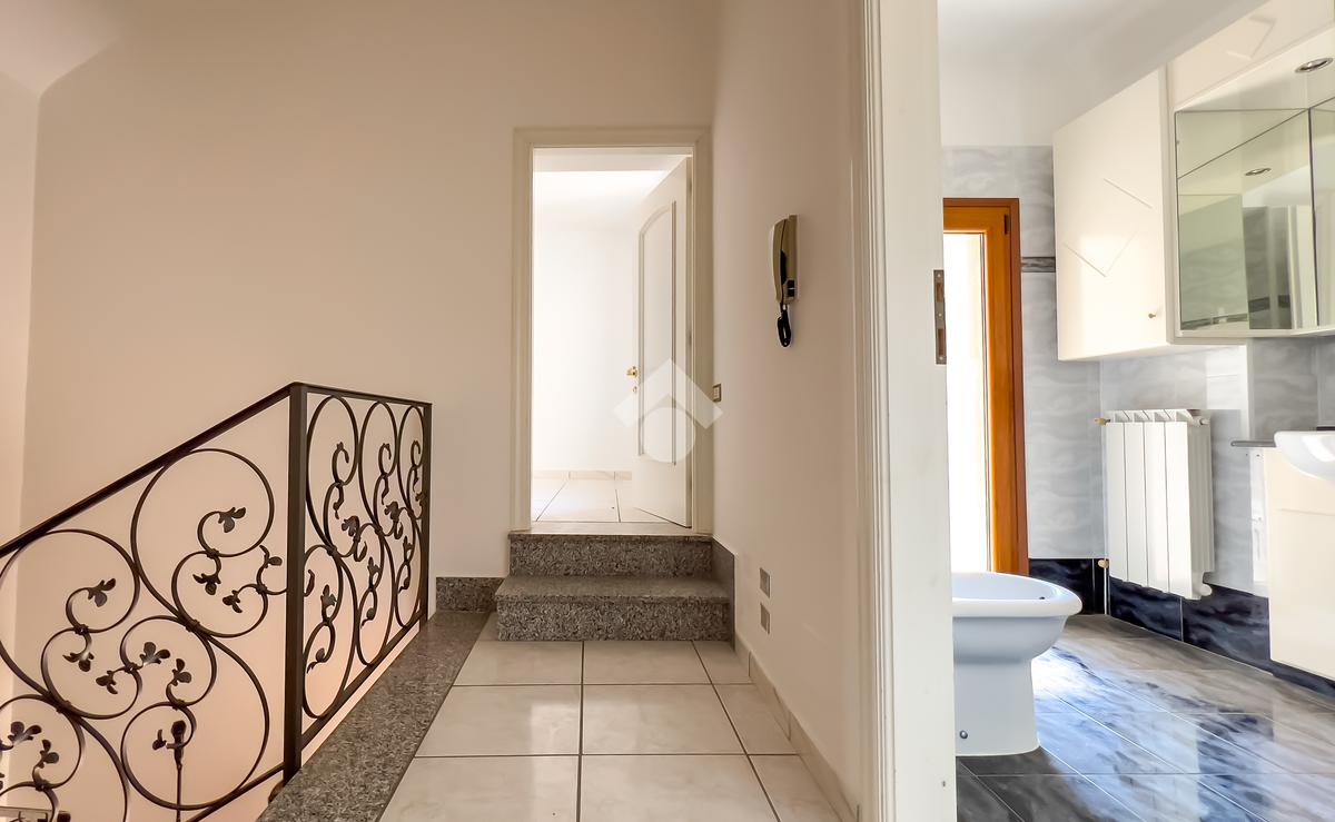 Piano superiore che viene distribuito da un disimpegno che ci consente l'accesso alle due camere, di cui una matrimoniale e una singola, servite da un bagno patronale con vasca e accesso al balcone.
