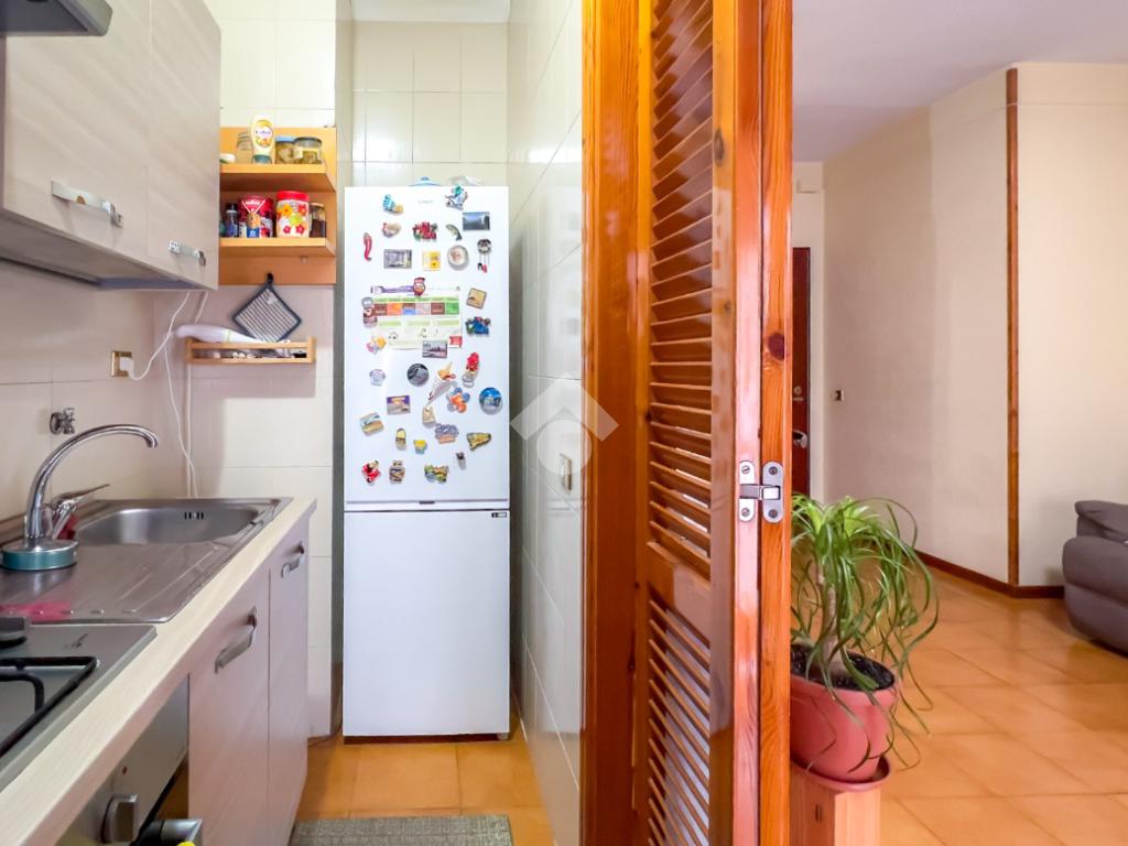 Situato al secondo piano rialzato con ascensore, questo immobile accoglie con un ampio soggiorno baciato dal sole, che si apre verso una cucina separata e funzionale: un ambiente pensato per chi ama vivere la casa in modo pratico ma accogliente.