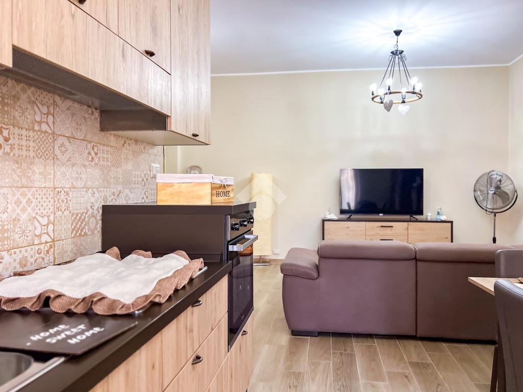 L’immobile si compone di soggiorno con angolo cottura e accesso al balcone, due camere da letto, bagno con box doccia e un pratico ripostiglio a supporto della zona notte. Al piano terra è presente un locale di pertinenza, rifinito e organizzato come ambiente indipendente: uno spazio versatile, perfetto come sala hobby, area relax, spazio giochi per bambini o per dedicarsi alle proprie passioni. Completa la proprietà una comoda cantinola. L’appartamento è dotato di impianto di climatizzazione e comfort moderni, mentre il contesto, composto da poche unità, garantisce privacy, autonomia nella gestione e assenza di spese condominiali. A disposizione dei residenti vi è la possibilità di parcheggio nell’area condominiale recintata e chiusa da cancello. La posizione è un ulteriore valore aggiunto: a pochi passi da servizi, negozi, scuole, centro città e lungomare, permette di muoversi comodamente senza l’uso quotidiano soluzione pronta da vivere, funzionale e versatile, perfetta come abitazione principale o come investimento a reddito. Per garantirti una visione completa di questo immobile, offriamo la possibilità di esplorarlo tramite un virtual tour.