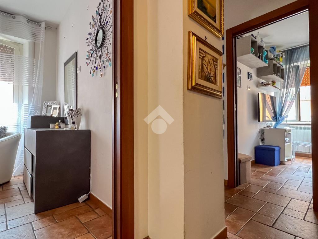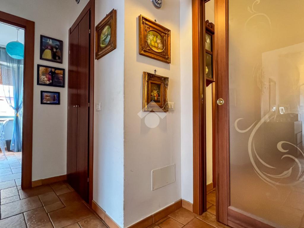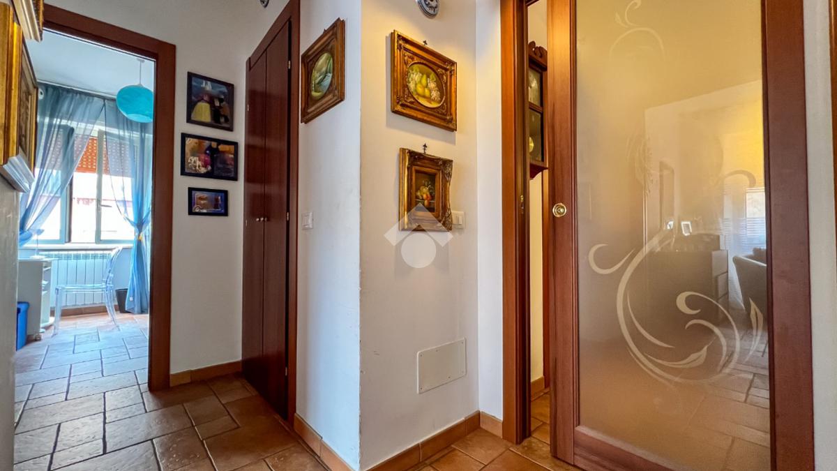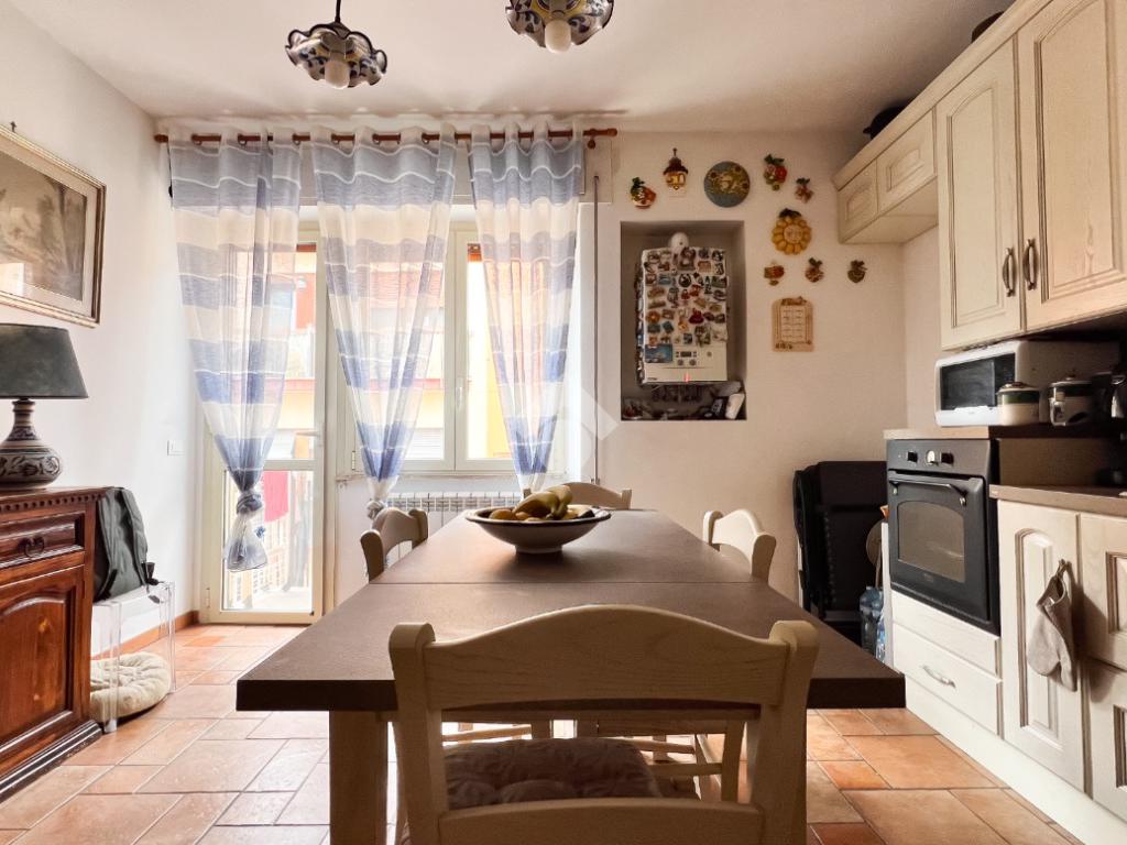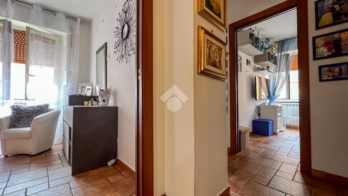 L’ingresso si apre sul soggiorno, luminoso e ben organizzato, collegato alla cucina abitabile dotata di balcone.