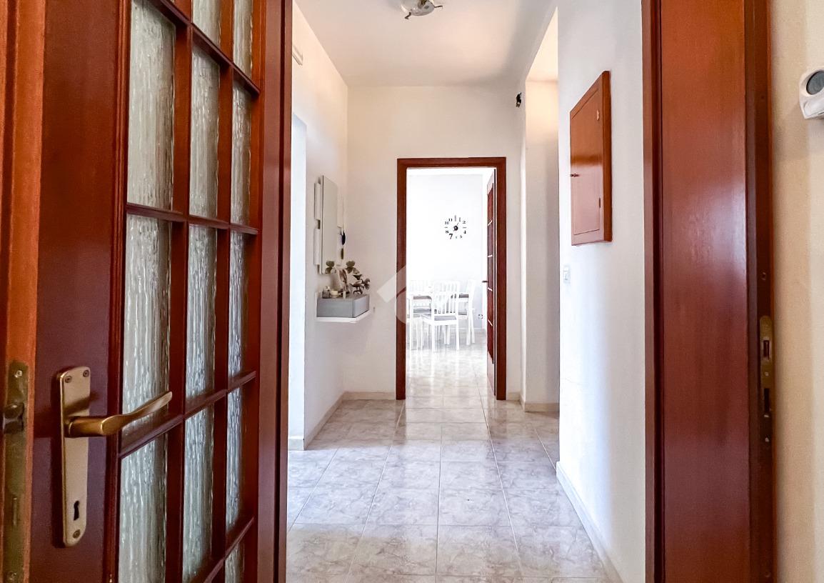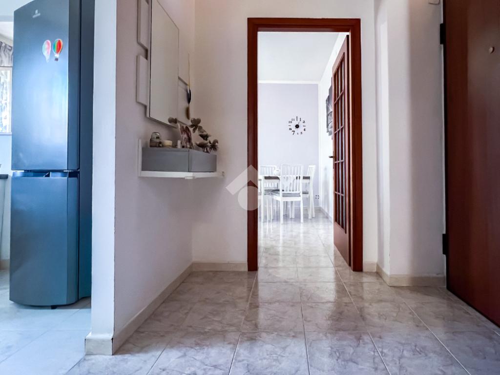 L’ingresso si apre su un ampio disimpegno che conduce al soggiorno, arricchito dall’accesso al balcone, uno spazio esterno utile per la quotidianità.