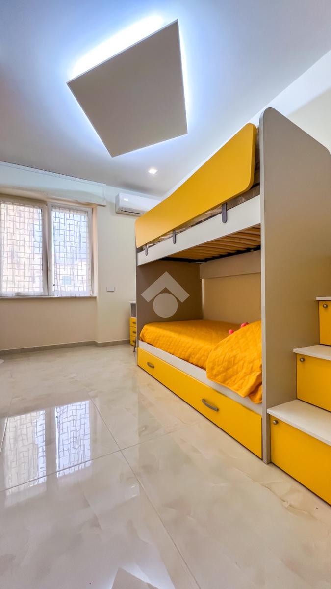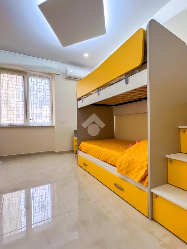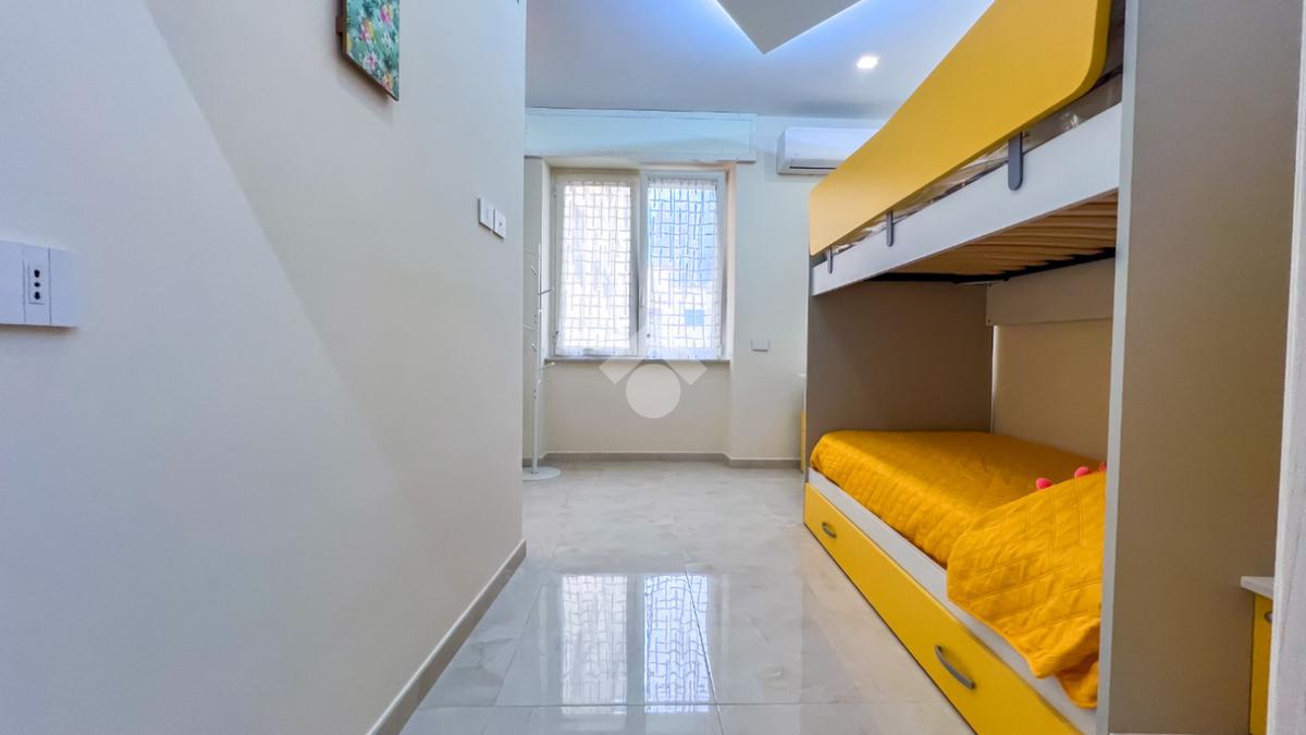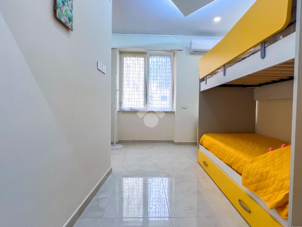 La zona notte comprende una camera matrimoniale e una doppia, entrambe ben illuminate grazie alle finestre che garantiscono aerazione naturale e un’ottima luminosità.