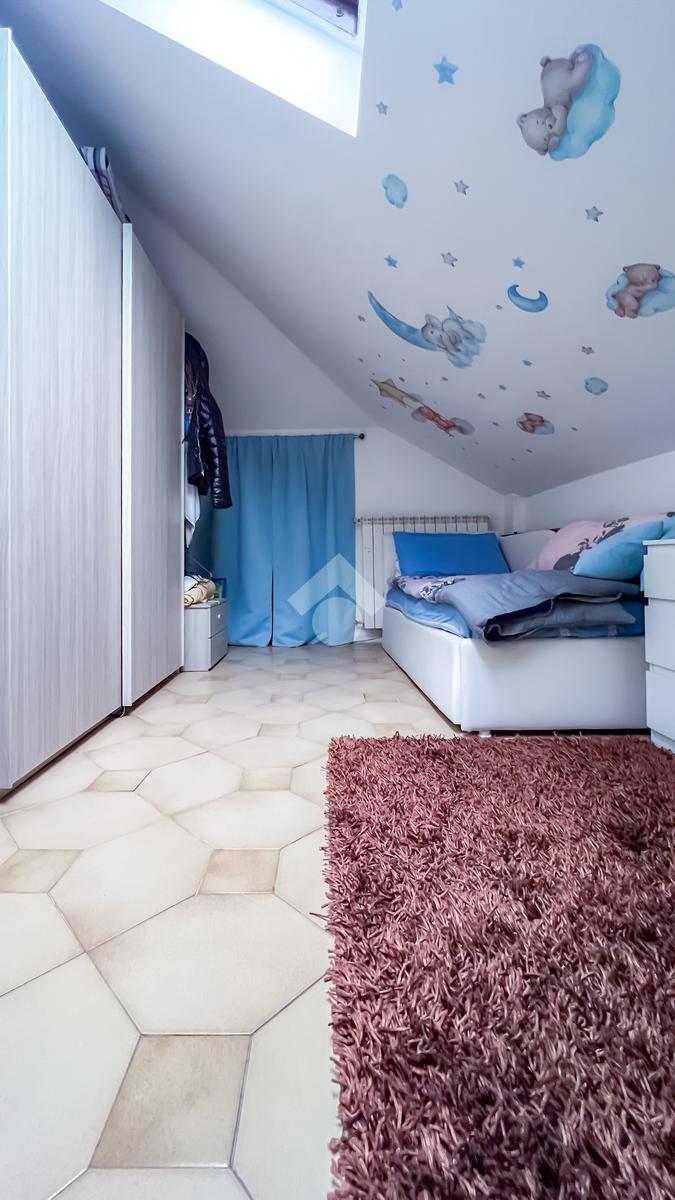La zona notte comprende una camera matrimoniale, una cameretta e un bagno dotato di box doccia.