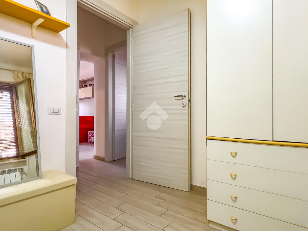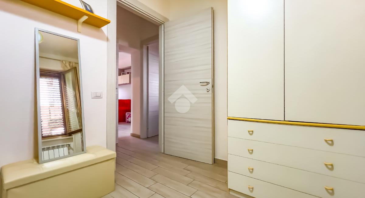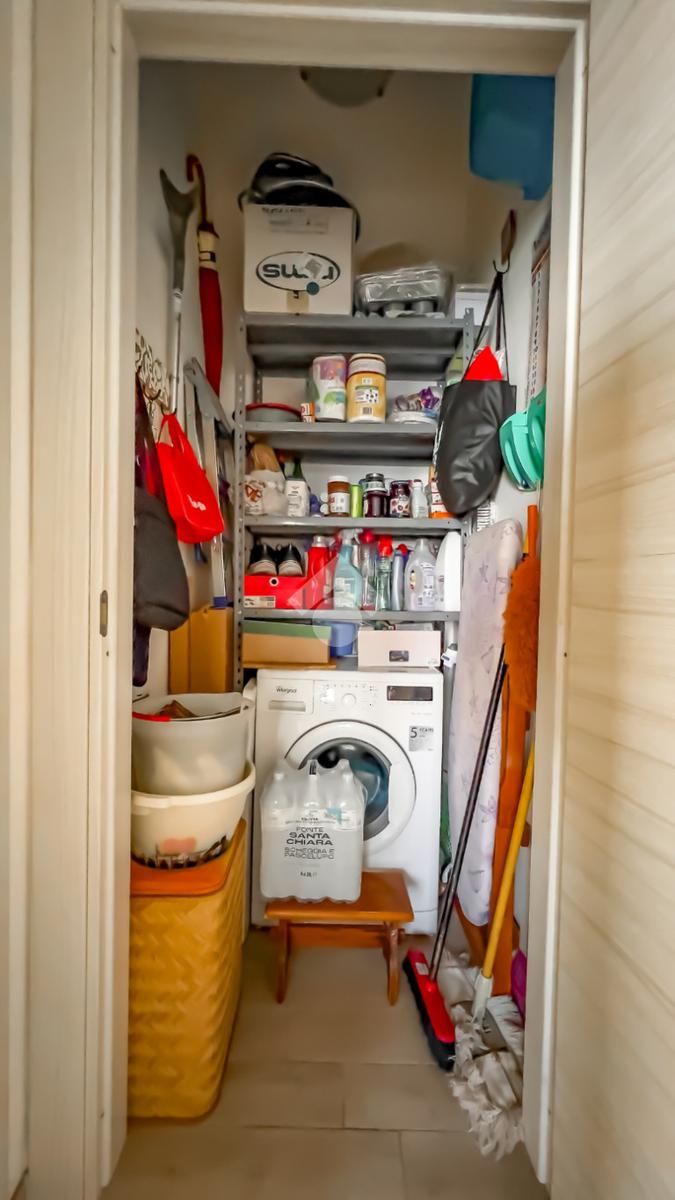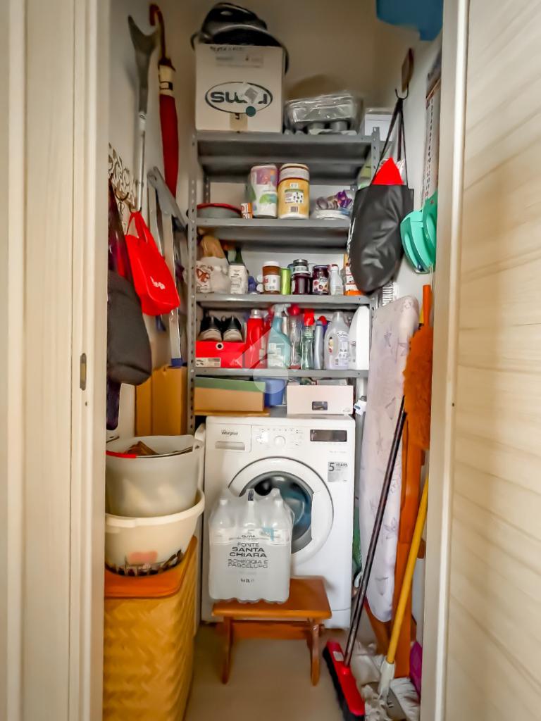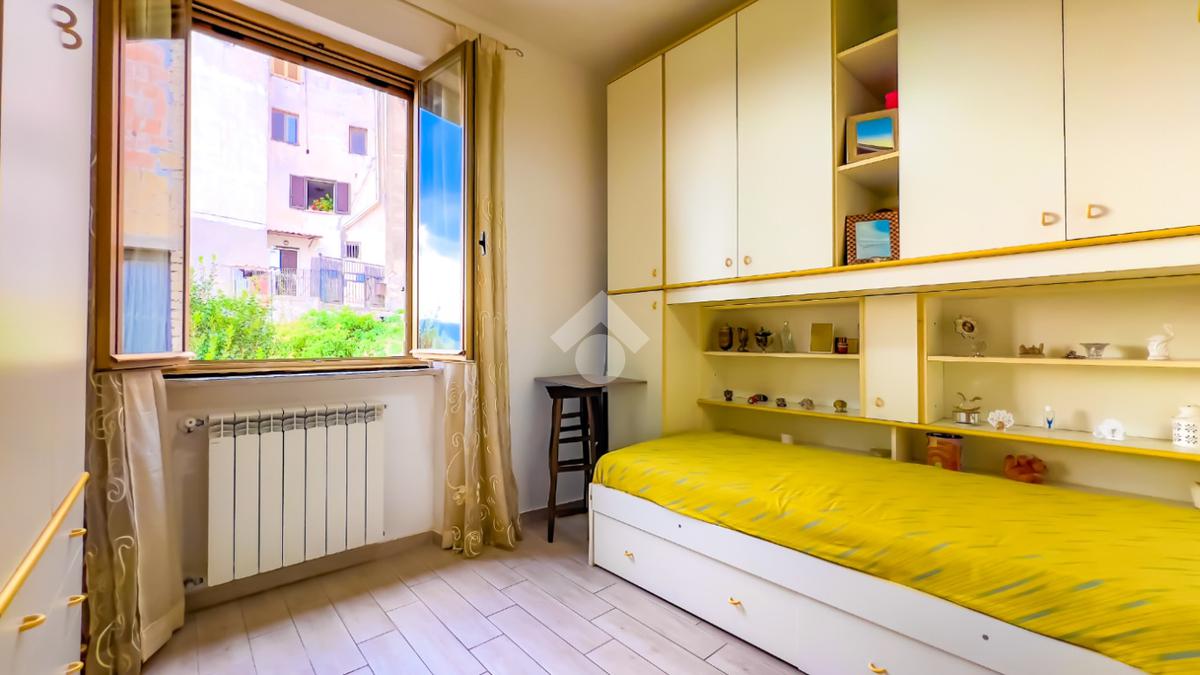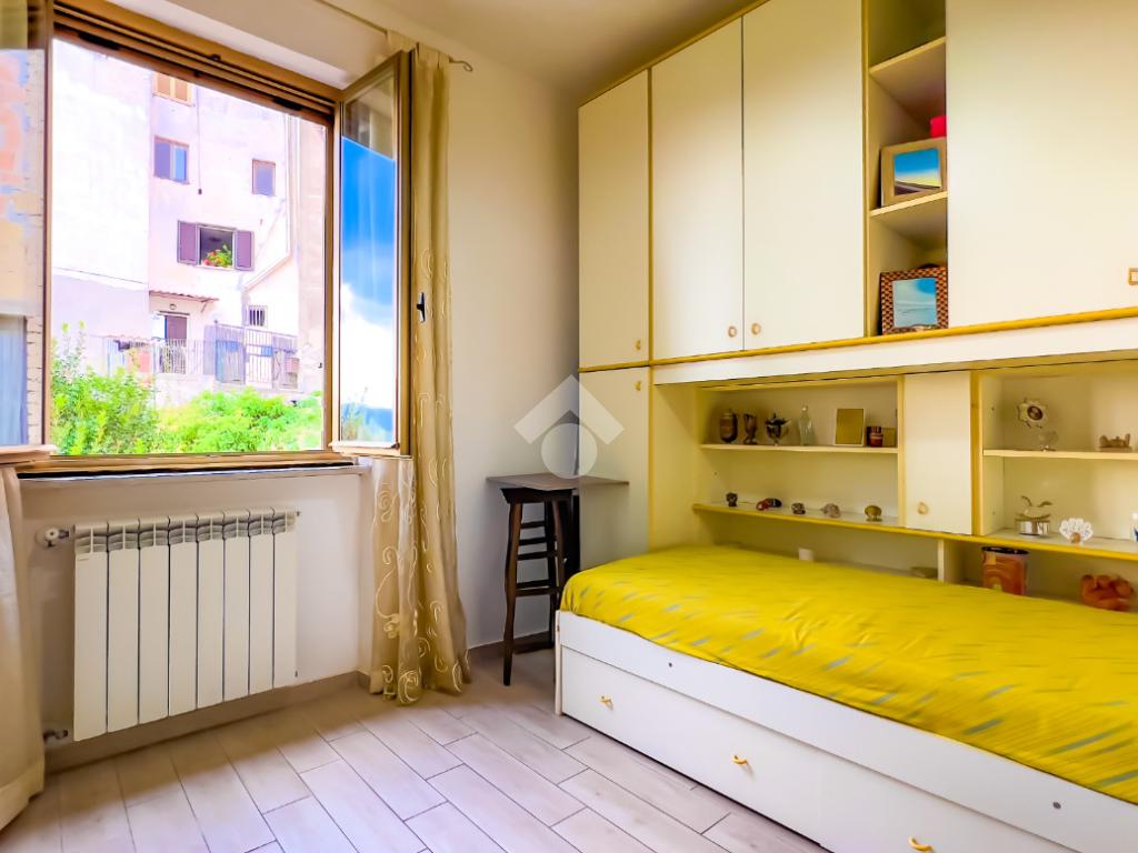 La zona notte offre una camera matrimoniale con vista sul mare e sul Golfo di Gaeta, una camera singola e un bagno con box doccia. Completano la proprietà un comodo ripostiglio, utilizzato come zona lavanderia, e una cantina di 7 mq al piano seminterrato.