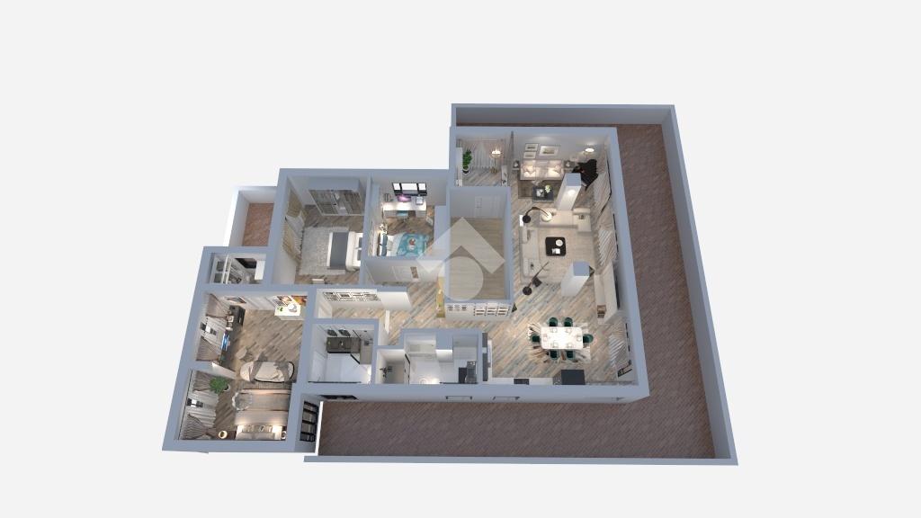 La zona notte è composta da tre camere da letto (una matrimoniale e due doppie) e due bagni finestrati. Completa la proprietà un balcone di 10 mq.