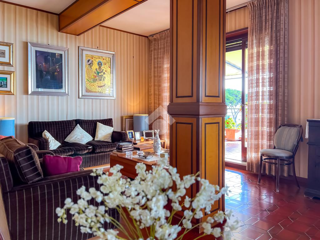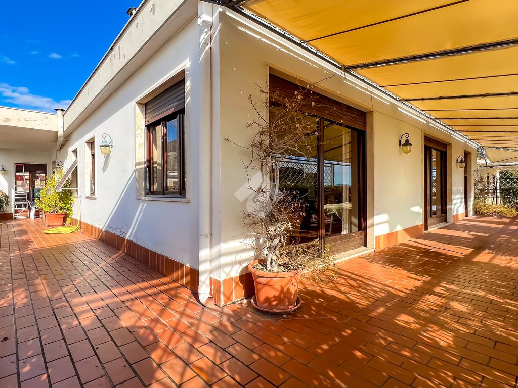 L’abitazione sviluppa 152 mq interni calpestabili, caratterizzati da ambienti ampi, luminosi e ben distribuiti. Il fulcro della casa è il salone doppio esposto a sud, impreziosito da grandi vetrate che regalano una vista mare senza ostacoli e accesso diretto al terrazzo panoramico di 117 mq, in parte coperto, ideale per vivere appieno gli spazi esterni in totale privacy.