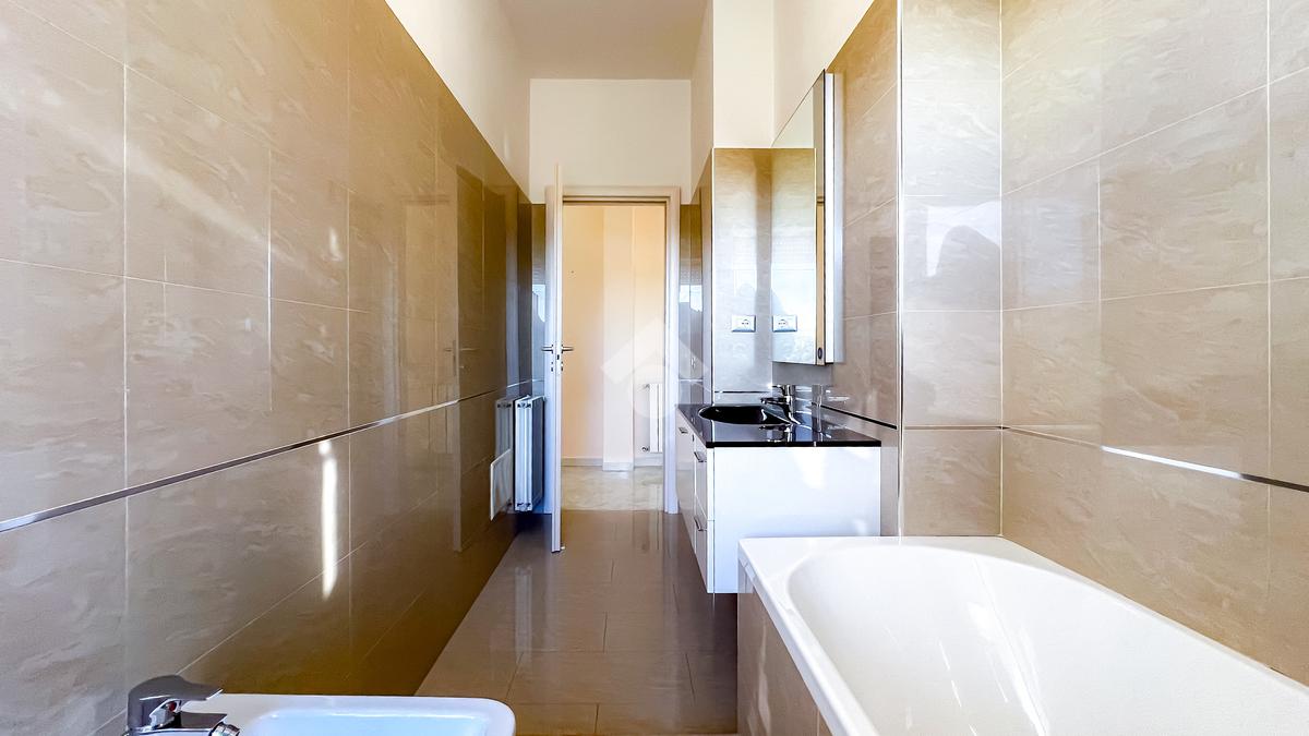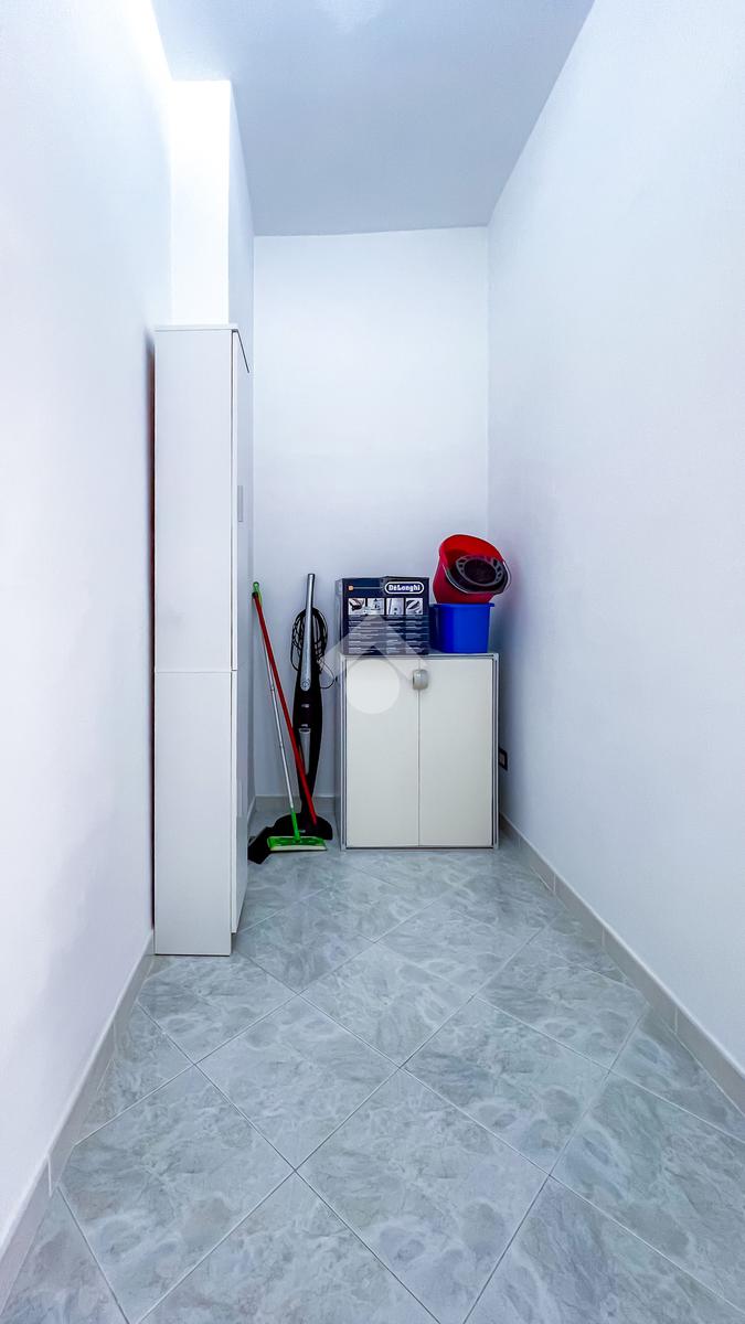 L’immobile dispone di un bagno principale con vasca e di un secondo bagno con box doccia, utilizzato anche come zona lavanderia, soluzione pratica per la gestione quotidiana. A completare gli interni, un comodo ripostiglio a fine corridoio.