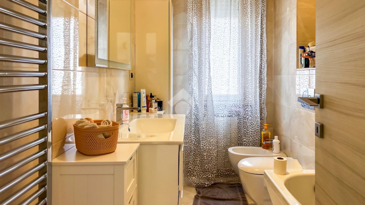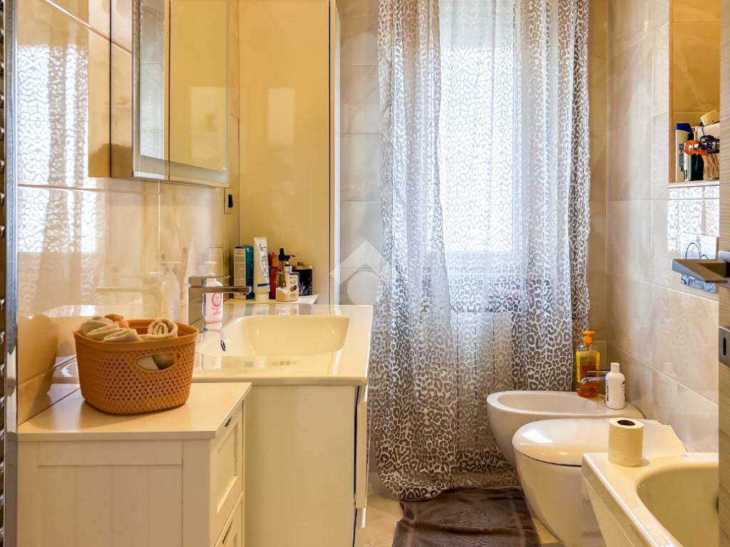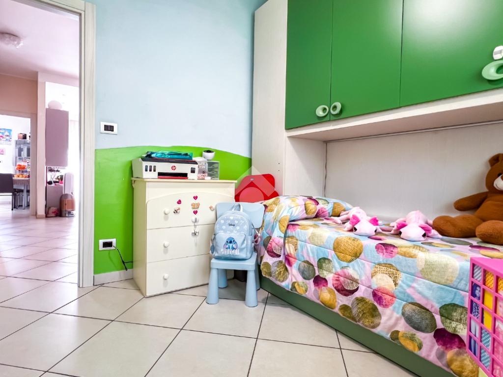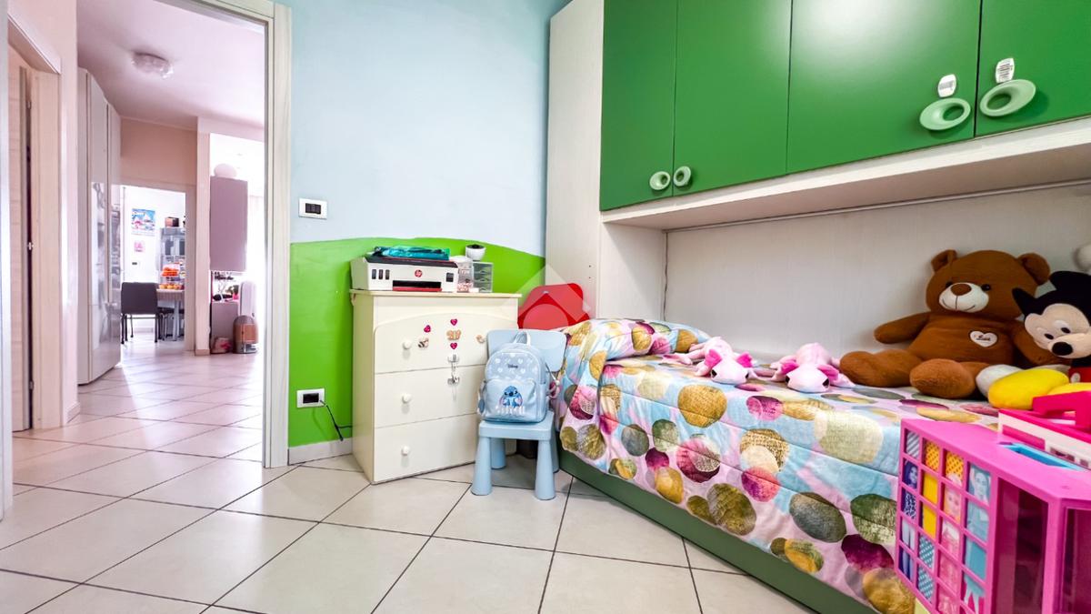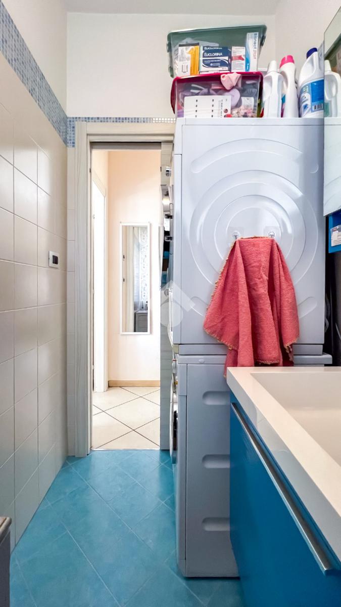 La zona notte comprende una camera matrimoniale e una cameretta, entrambe con uscita sui balconi abitabili, così come il soggiorno, garantendo luce naturale e piacevole ventilazione in tutti gli ambienti. Completano la proprietà due bagni finestrati — di cui uno con vasca — e un pratico ripostiglio.