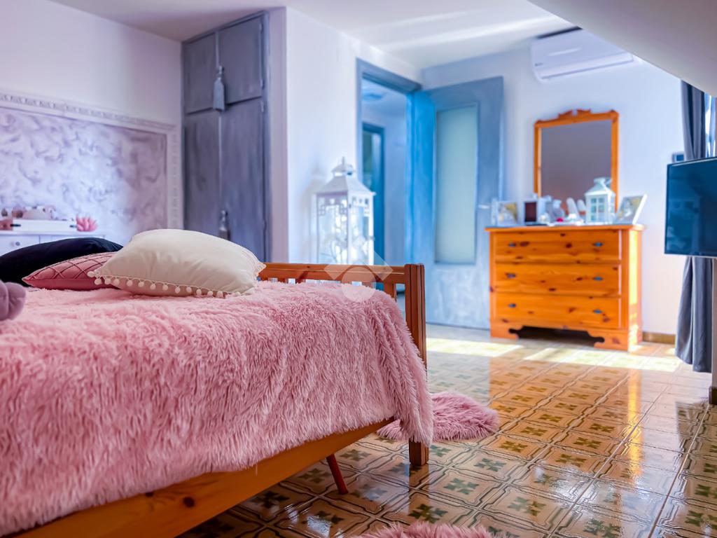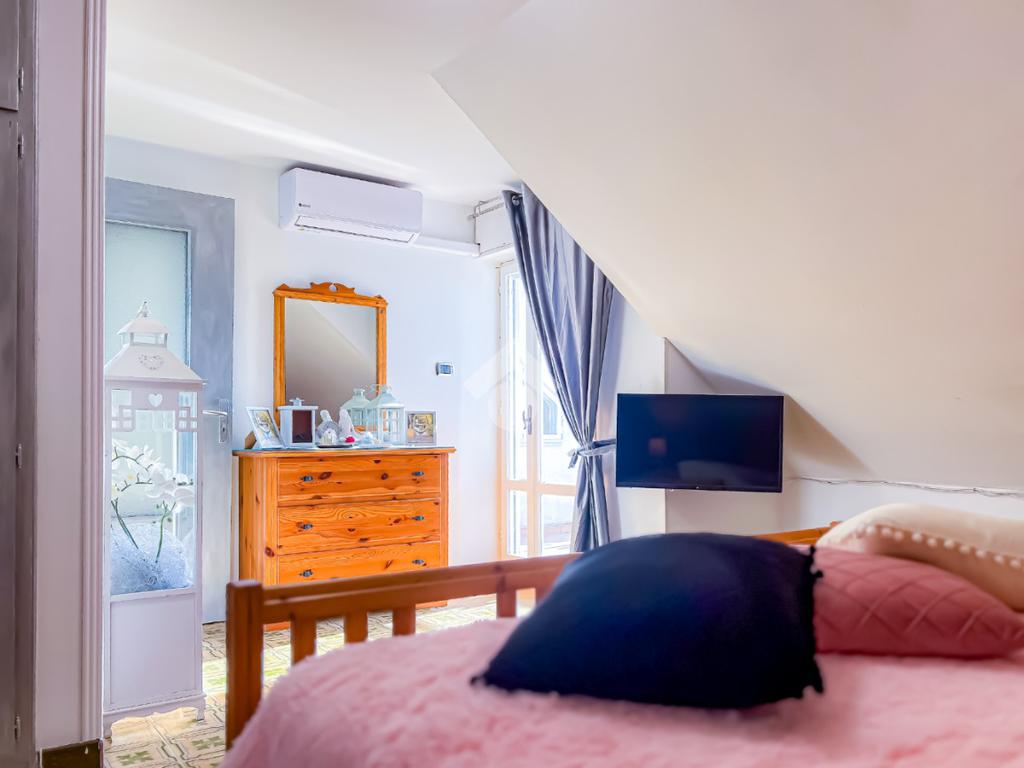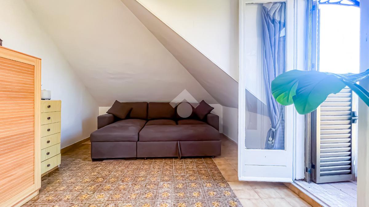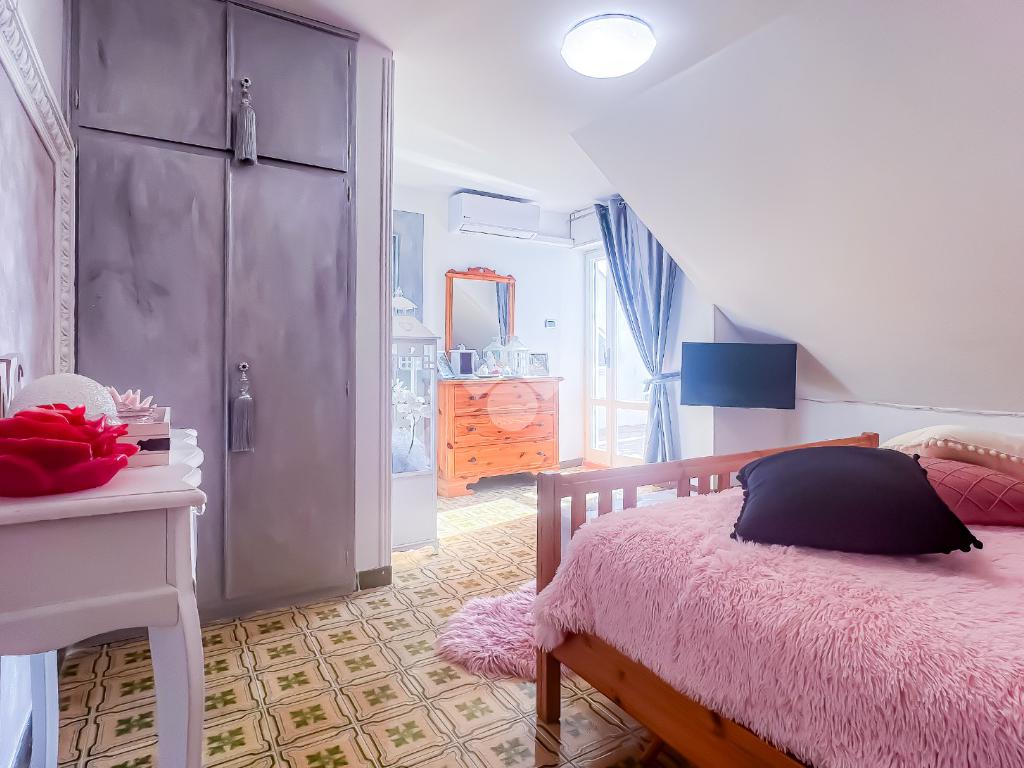 La zona notte è composta da due camere da letto matrimoniali: entrambe con uscita sul balcone e una con accesso diretto al terrazzo vista mare. Completa la proprietà un bagno dotato di vasca.