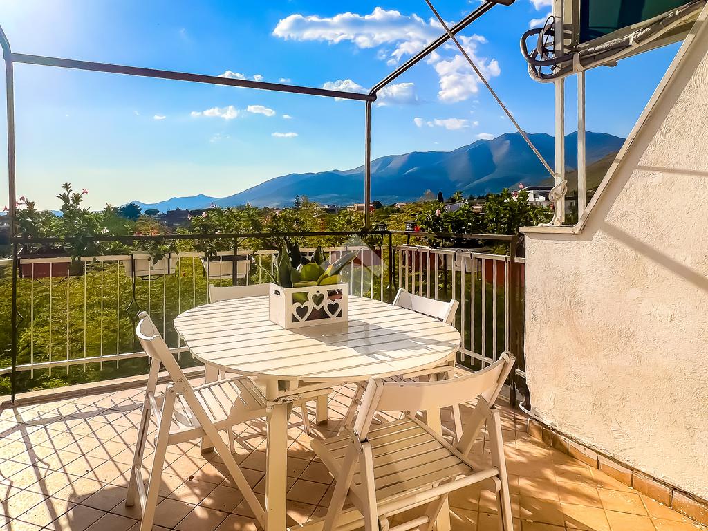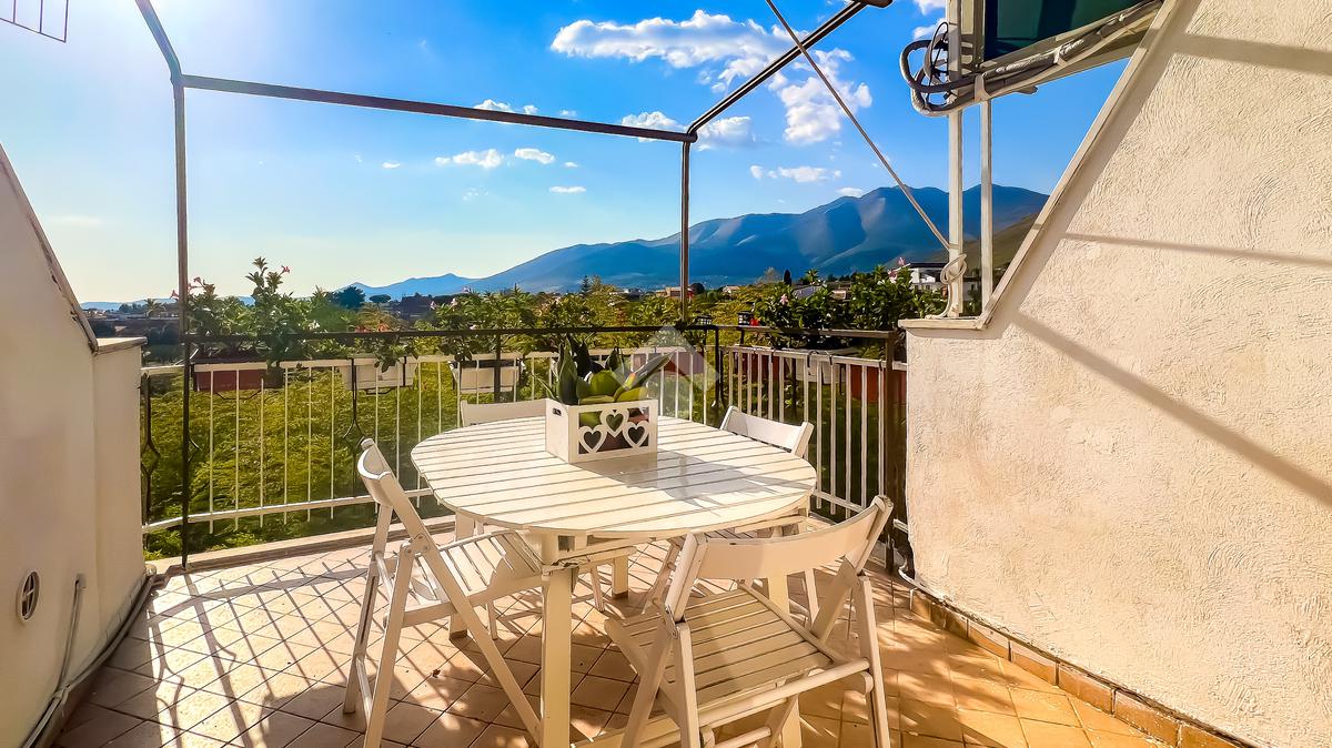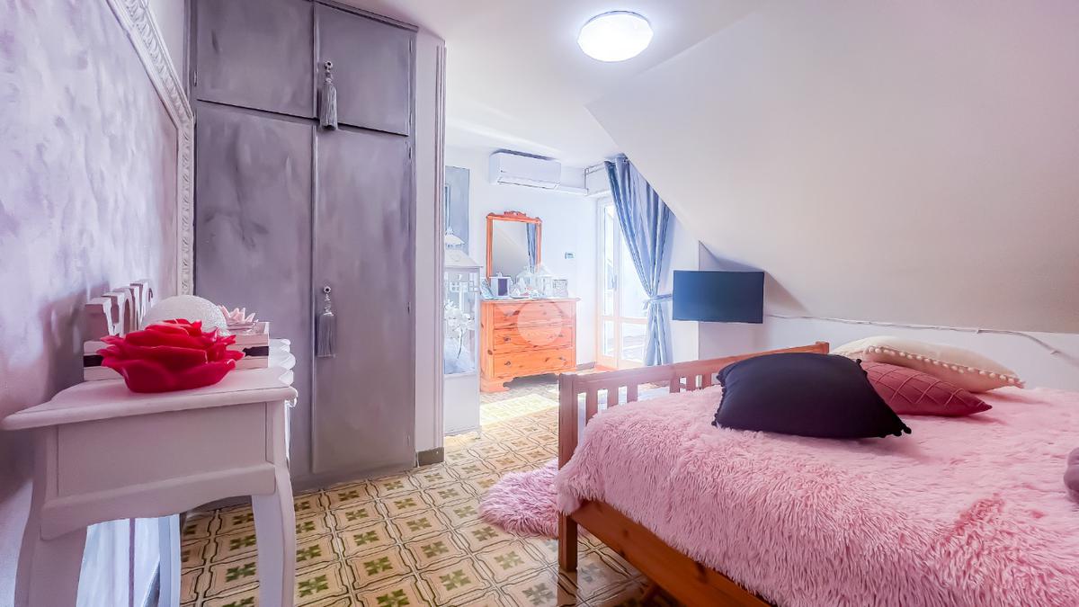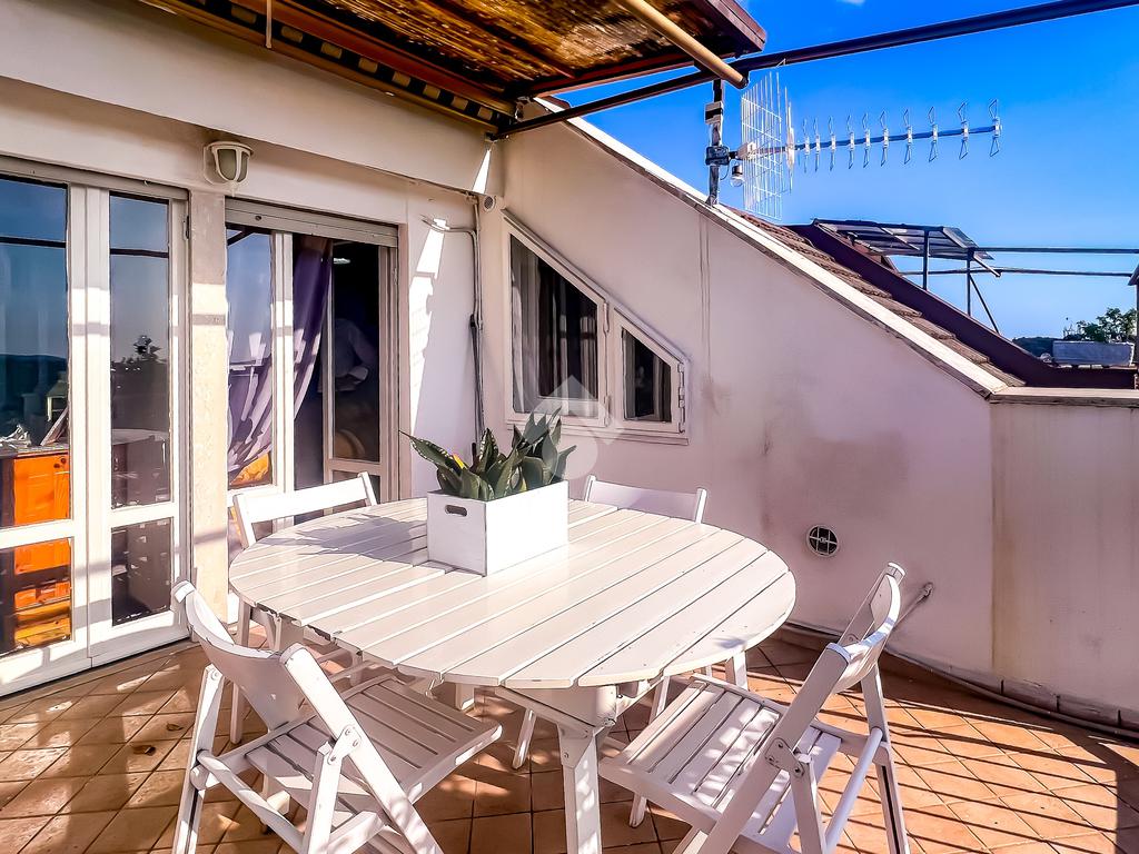 La zona notte è composta da due camere da letto matrimoniali: entrambe con uscita sul balcone e una con accesso diretto al terrazzo vista mare. Completa la proprietà un bagno dotato di vasca.