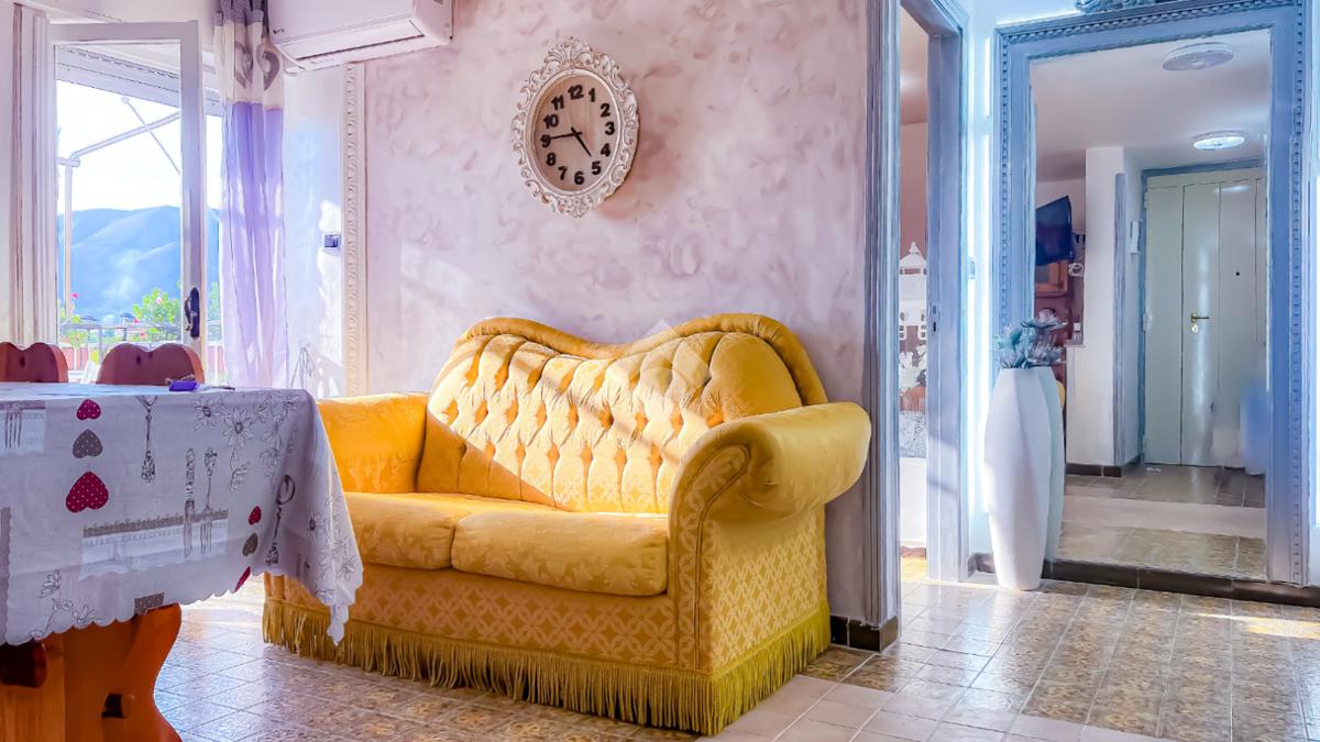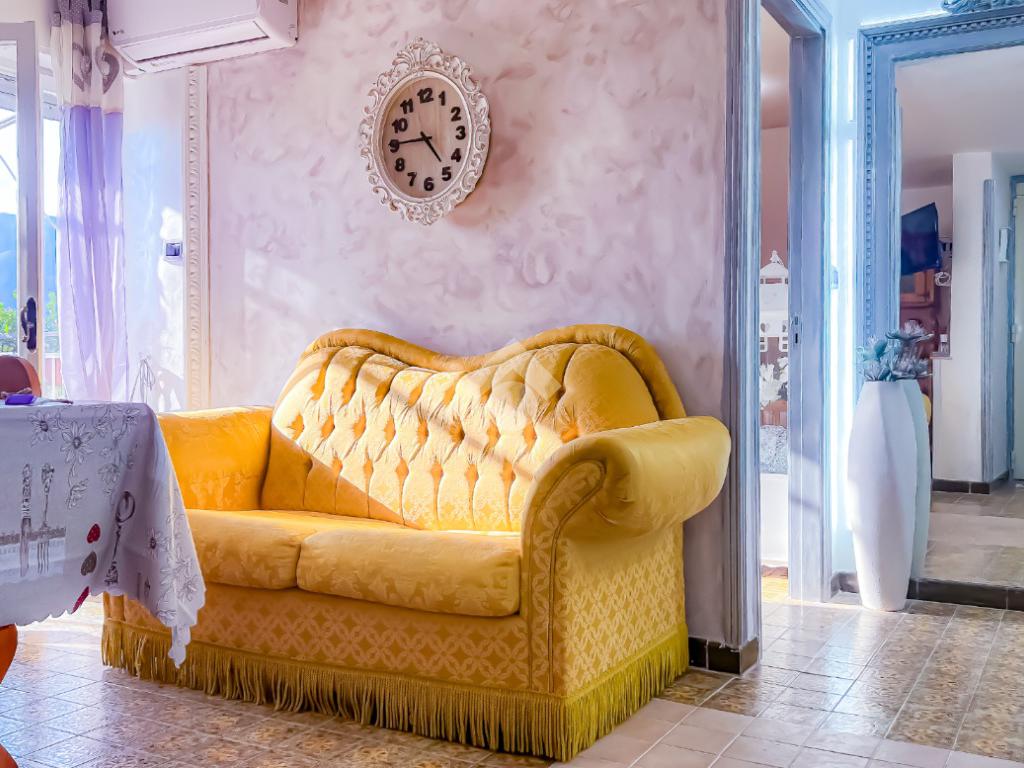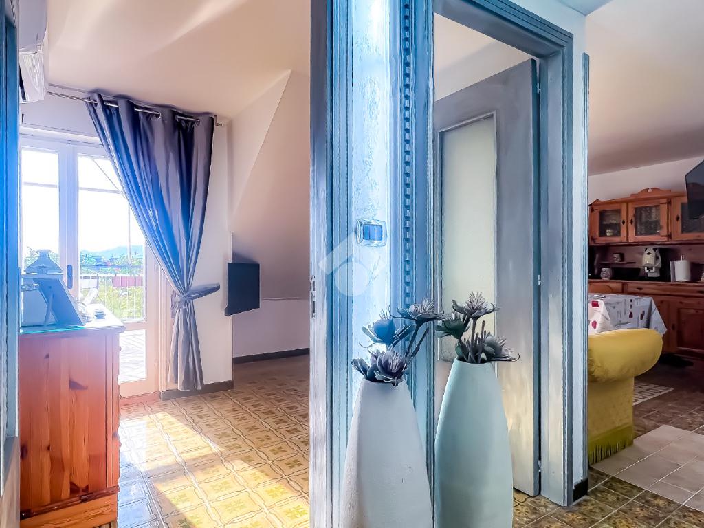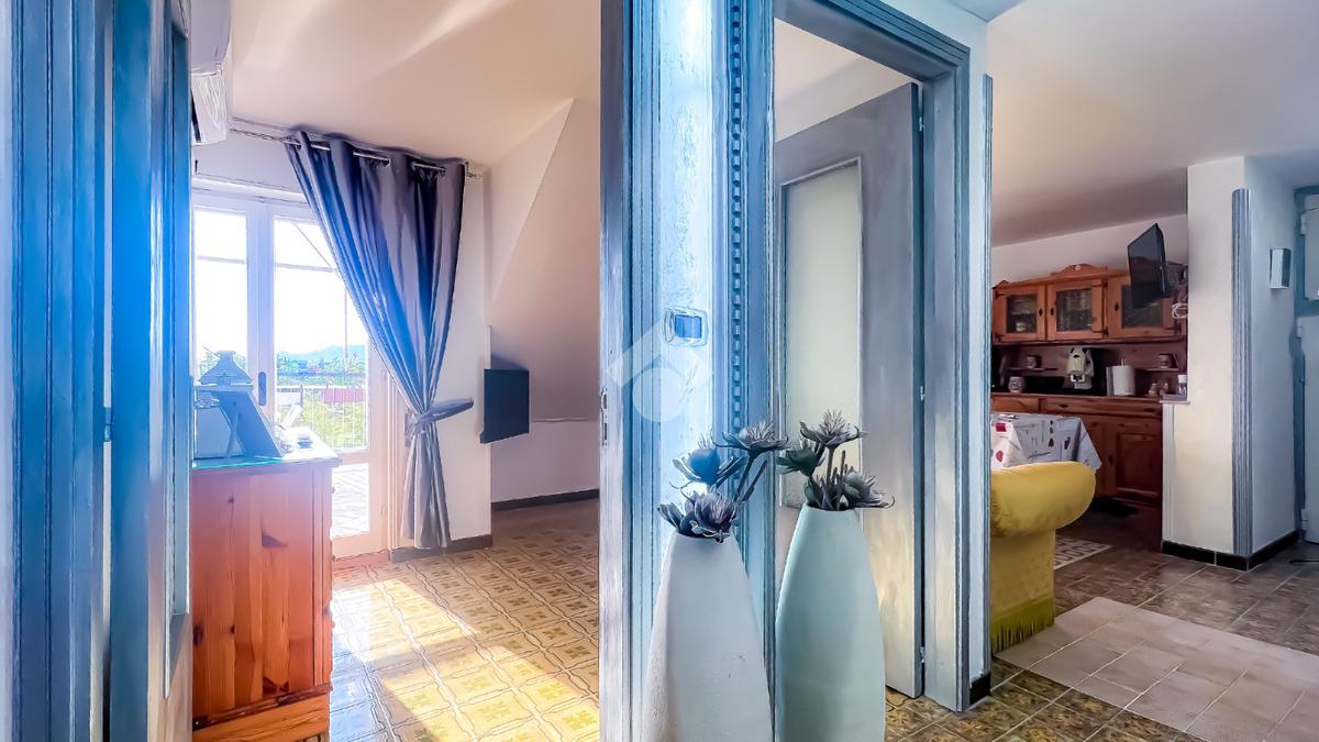 L’ingresso conduce a un disimpegno che accompagna alla zona giorno, composta da un soggiorno con angolo cottura. Da qui si accede direttamente al terrazzo vista mare, uno spazio esterno piacevole e riservato, ideale per trascorrere momenti di relax all’aperto.