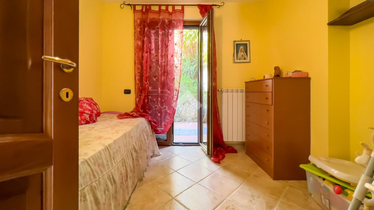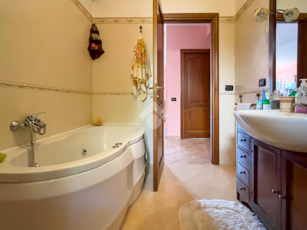 La zona notte comprende tre camere da letto: una padronale con accesso alla terrazza e due singole che si affacciano sulla corte giardinata. Completano l’appartamento due bagni, di cui uno padronale con vasca idromassaggio e uno con box doccia.