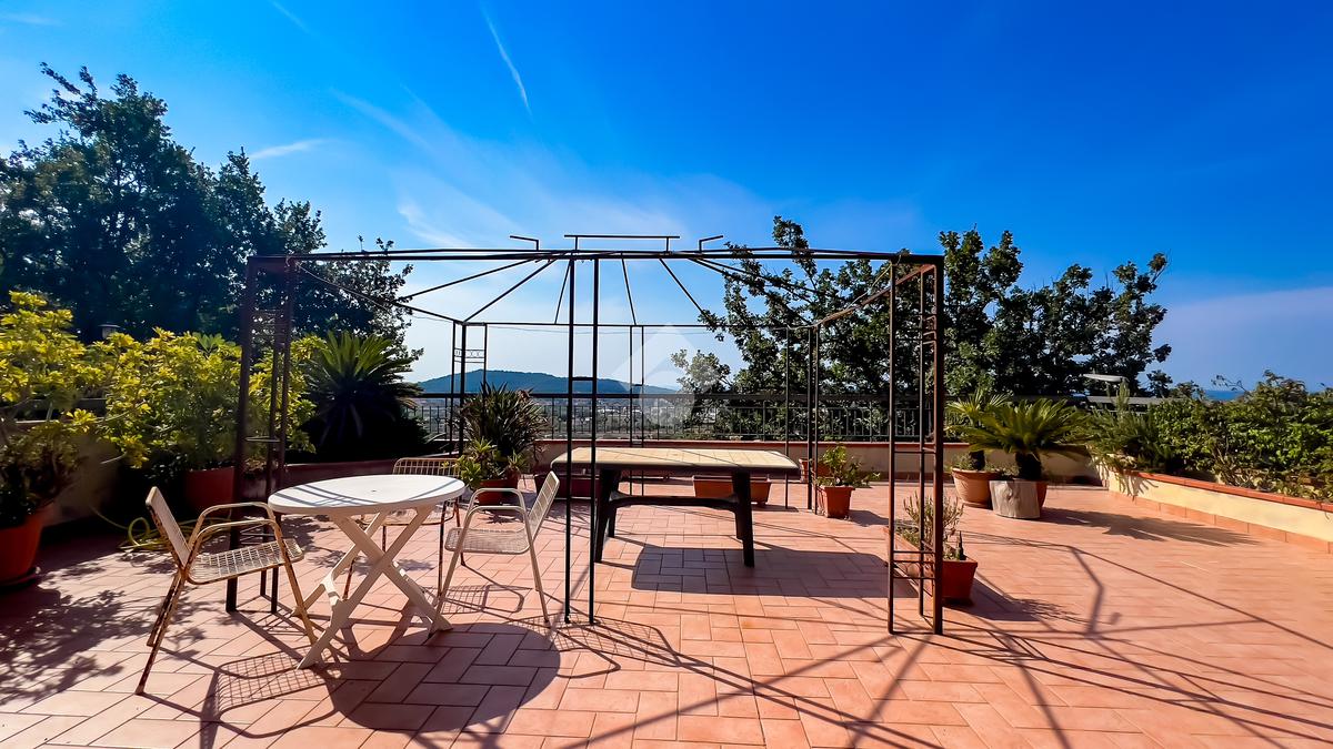 Il vero punto di forza dell’immobile è l’ampia terrazza di 130 mq, perfetta per pranzi, cene o momenti di relax all’aperto, con una vista panoramica spettacolare sul mare e sulla città, che aggiunge grande valore e carattere alla proprietà.