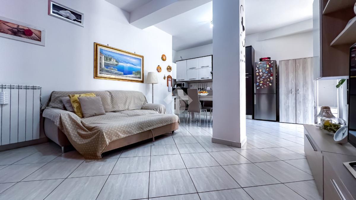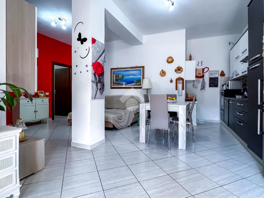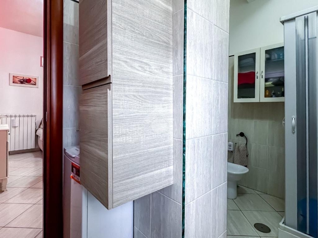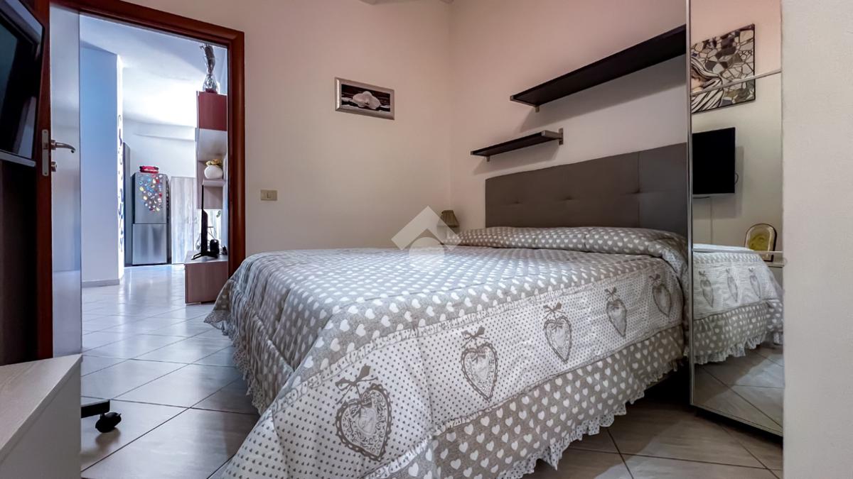 La soluzione, dotata di ingresso indipendente, accoglie con un soggiorno con angolo cottura, ambiente funzionale e ben organizzato. La zona notte è composta da due camere da letto matrimoniali e da un bagno con box doccia.