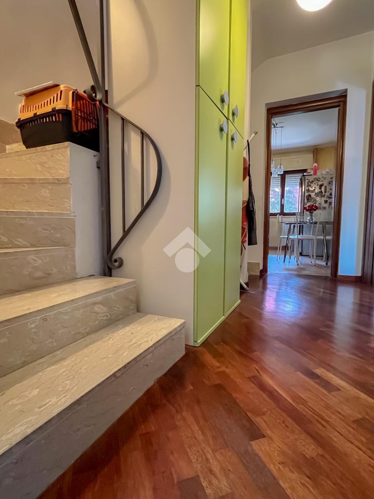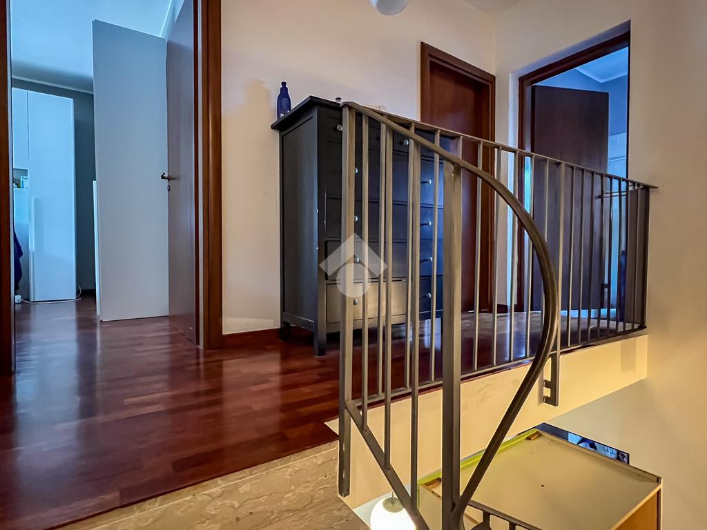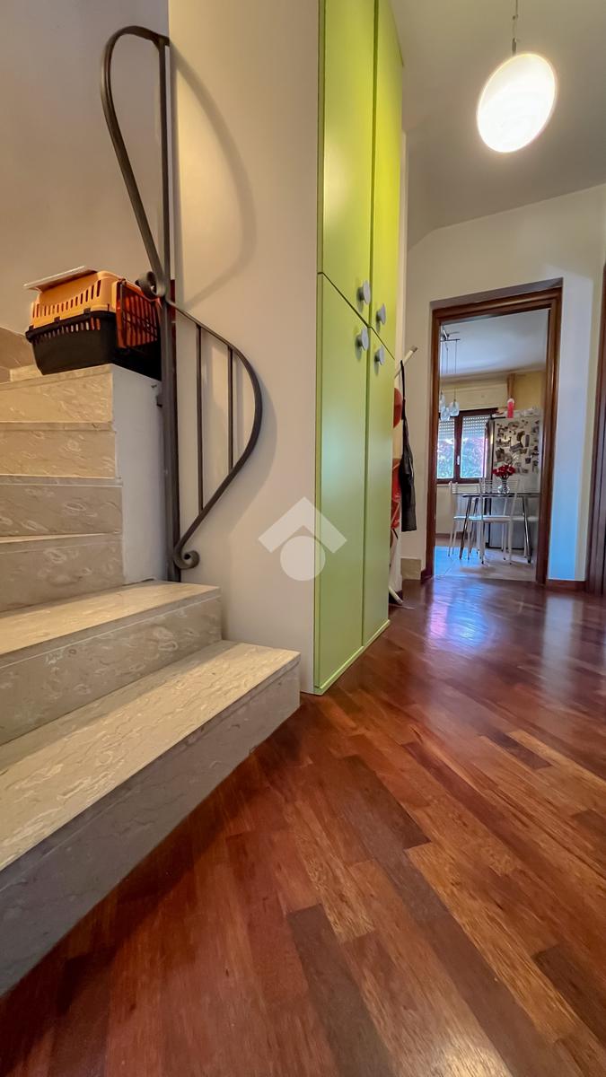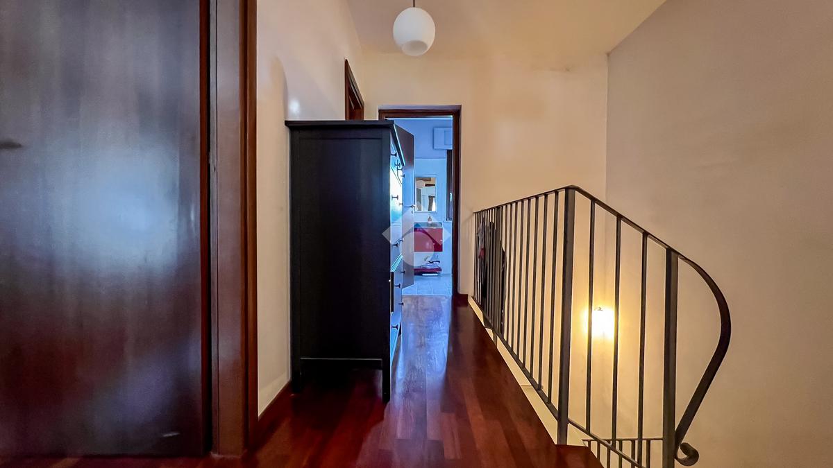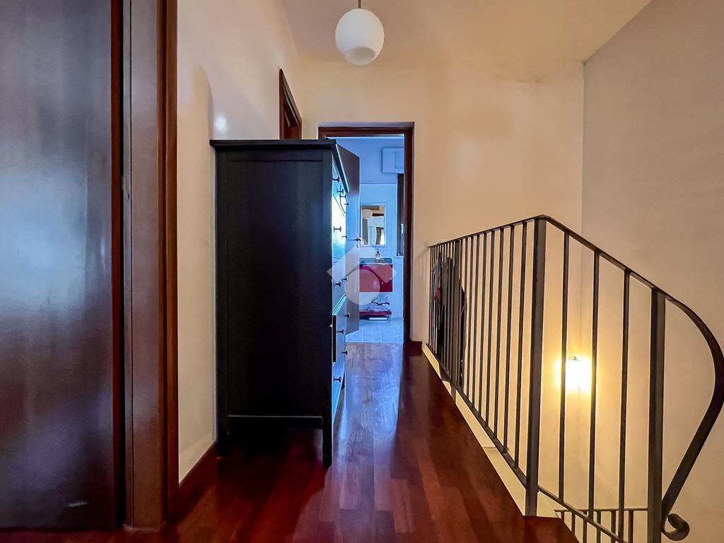Le finiture in parquet su tutta la casa donano un tocco di eleganza e calore agli ambienti. Le scale interne collegano comodamente i tre livelli, garantendo una distribuzione funzionale degli spazi.