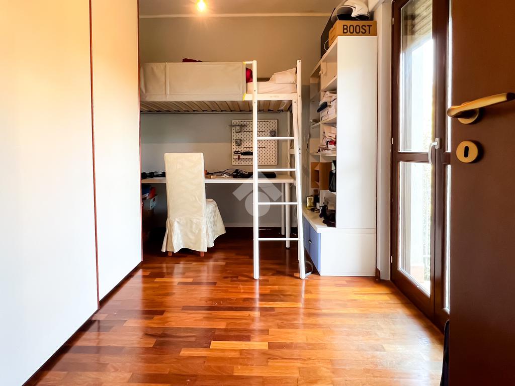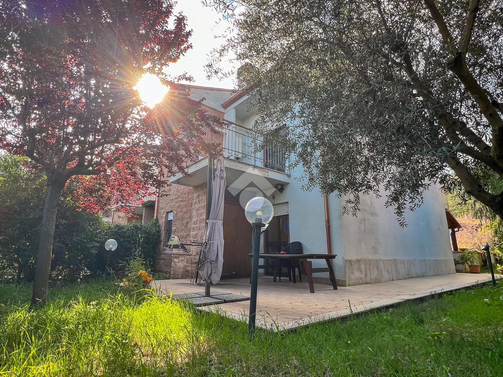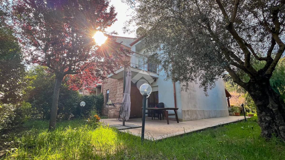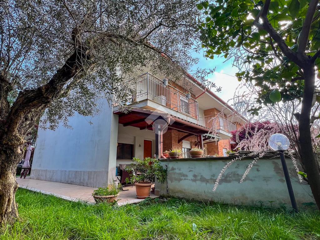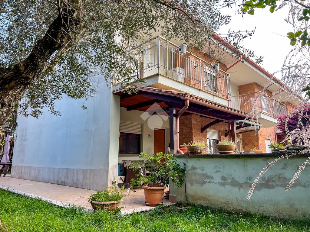 Le finiture in parquet su tutta la casa donano un tocco di eleganza e calore agli ambienti. Le scale interne collegano comodamente i tre livelli, garantendo una distribuzione funzionale degli spazi.