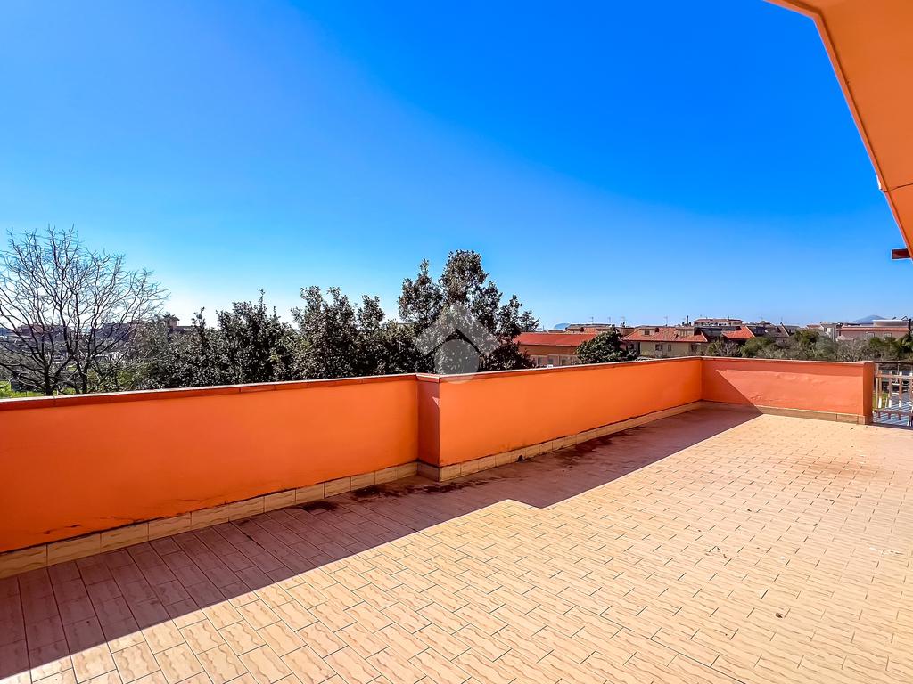 Al primo piano, un ampio disimpegno conduce alla zona notte di 110 mq interni calpestabili, dove troviamo cinque camere: due camere matrimoniali con uscita sul terrazzo, due camere di cui una con uscita sul terrazzo e una con finestra, e infine una camera con annesso bagno con box doccia e uscita sul terrazzo.