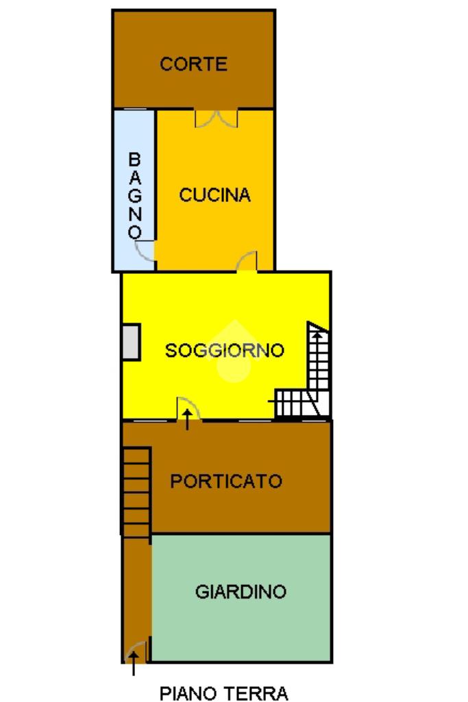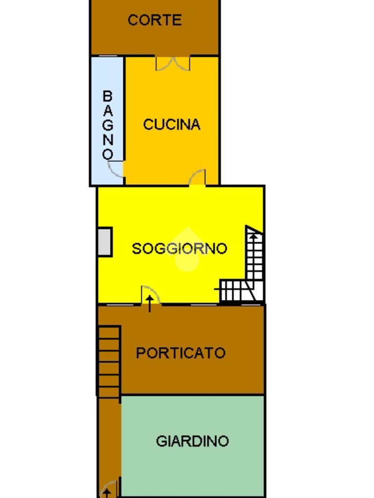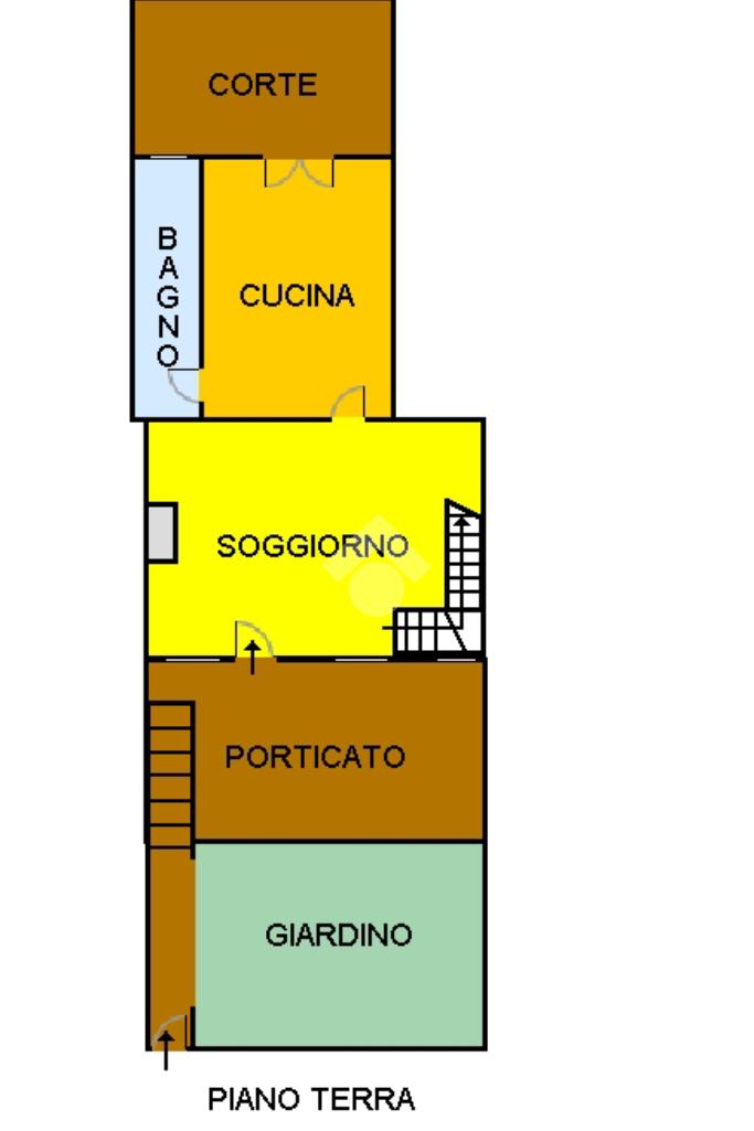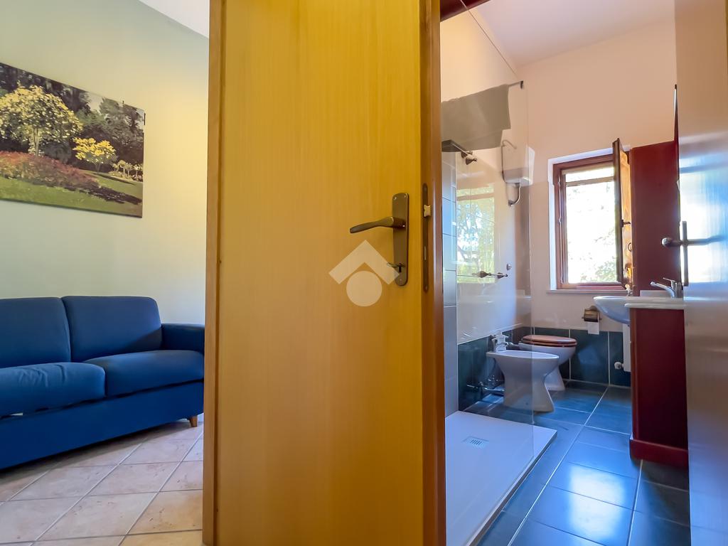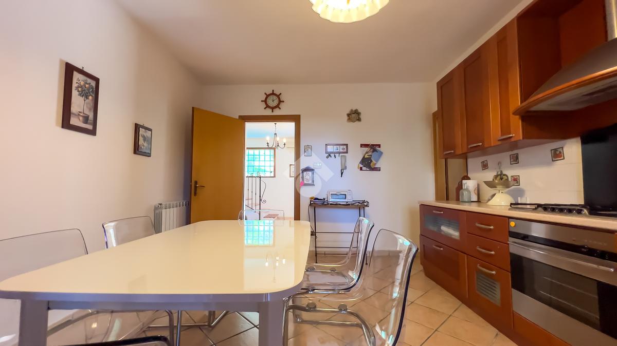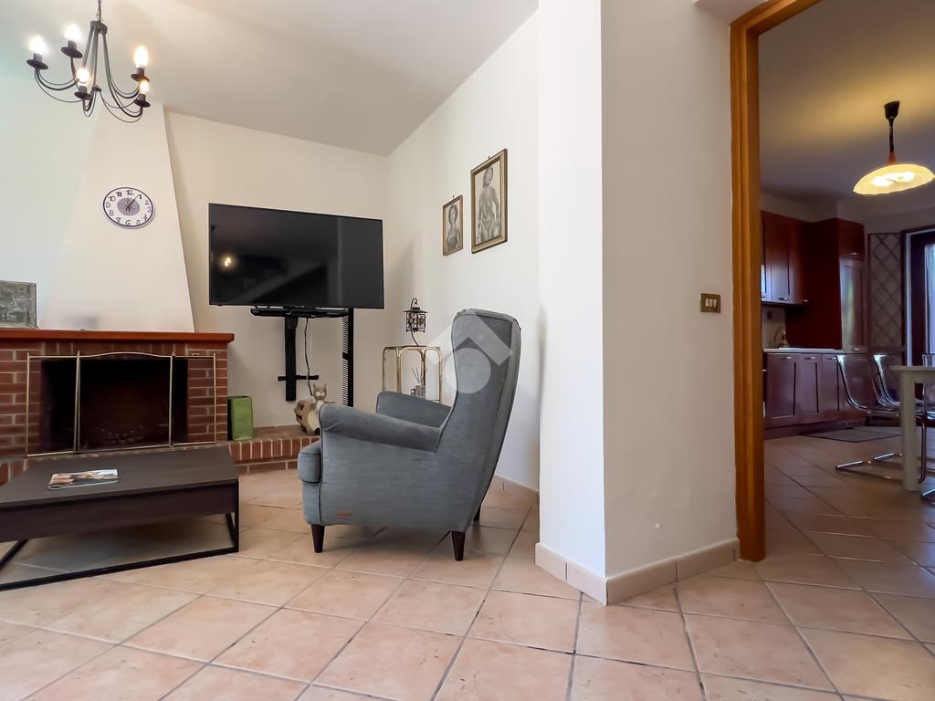 La soluzione si sviluppa su due livelli. Al piano terra, si viene accolti da un ampio soggiorno luminoso con camino a vista, perfetto per momenti di relax. La cucina abitabile, con accesso una deliziosa e ampia corte esterna pavimentata, è l'ideale per pranzi e cene all'aperto. Sempre al piano terra, si trova un bagno dotato di un comodo box doccia.