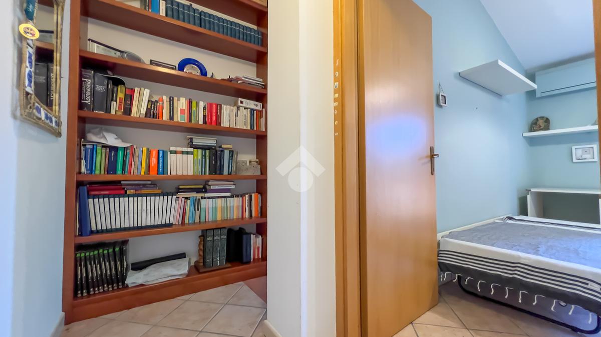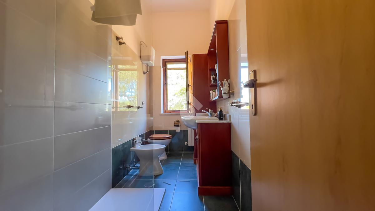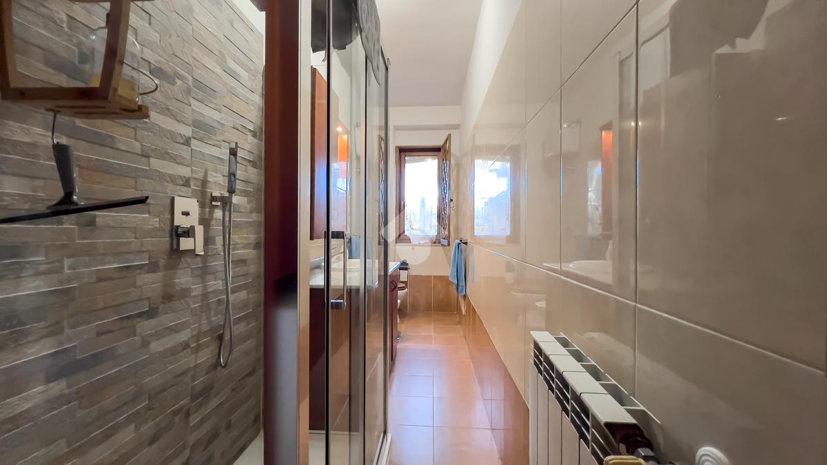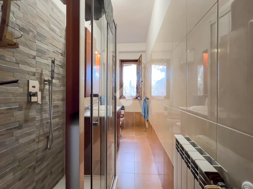 Il secondo bagno, spazioso e raffinato, è dotato di un'ampia doccia vetrata in walk in, aggiungendo un tocco di lusso alla quotidianità.