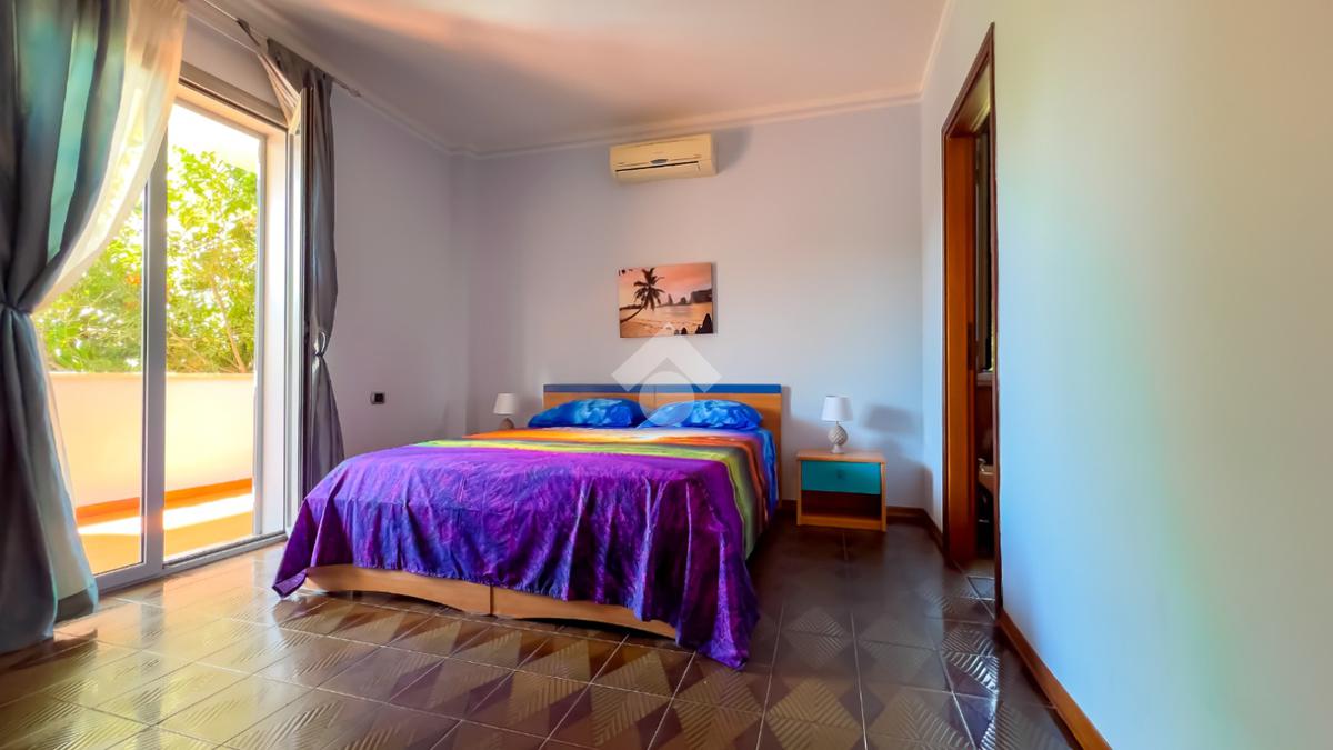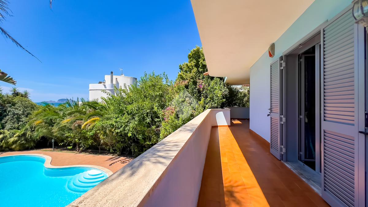 Il primo piano ospita la zona notte, composta da due camere matrimoniali e due camerette. Le camere matrimoniali si affacciano su un’ampia balconata perimetrale panoramica, dalla quale lo sguardo abbraccia il mare. Il piano dispone di due bagni, uno dei quali privato per la camera padronale.
