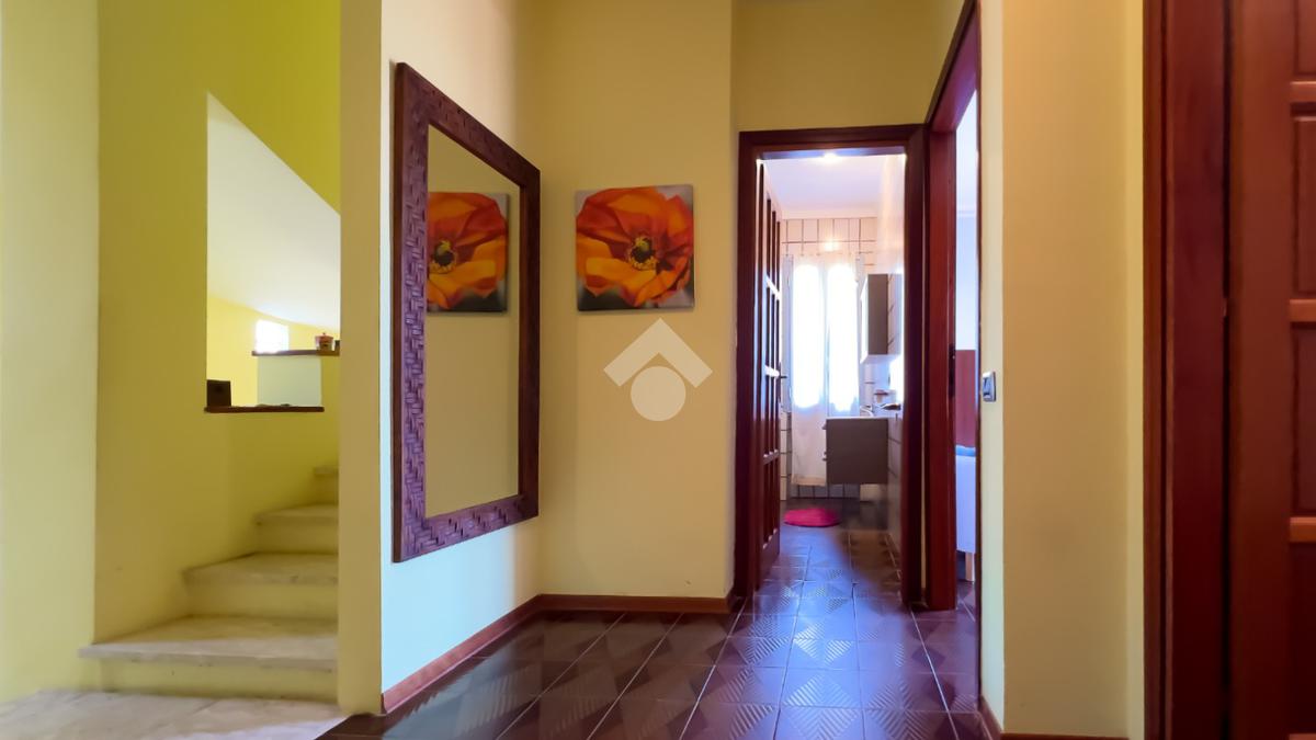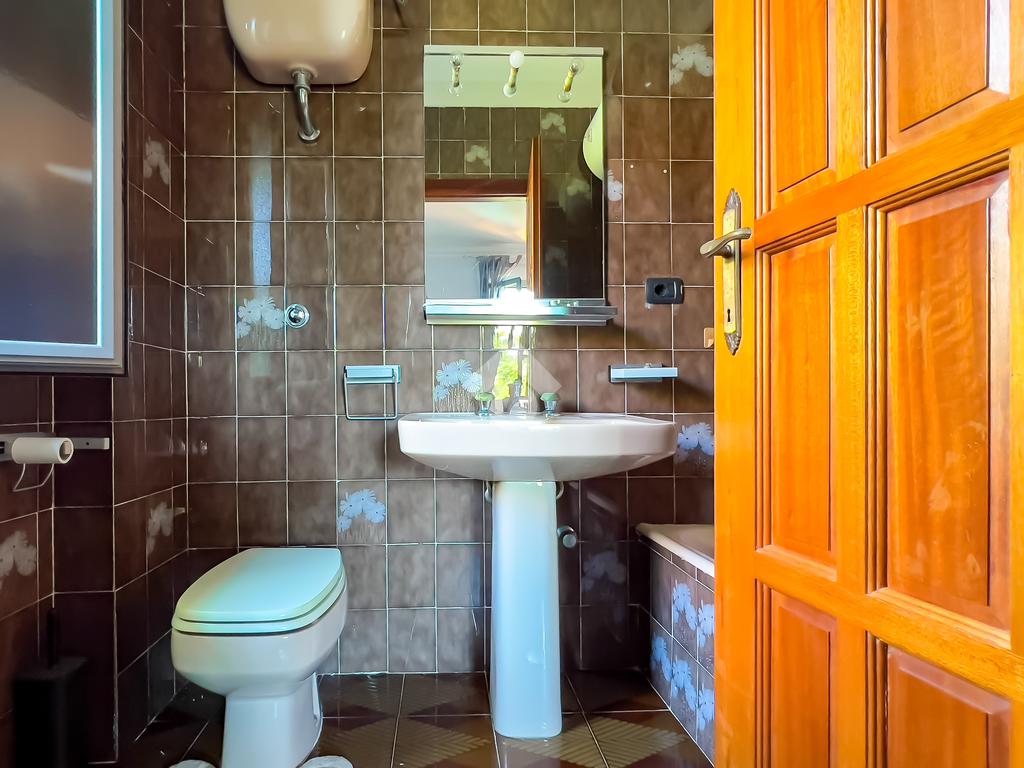 Al piano terra, il cuore della villa è l’ampio soggiorno con camino, affiancato dalla sala da pranzo e impreziosito da grandi vetrate che si affacciano sulla corte esterna. Qui troviamo la piscina con acqua salata, inserita in un elegante giardino di circa 900 mq, dove pavimentazioni, spazi verdi e zone relax creano un’oasi privata perfetta per momenti conviviali o di totale relax. Completano il piano una cucina funzionale, un bagno con box doccia e una zona lavanderia organizzata.