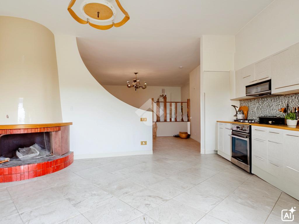 Al piano terra (65 mq calpestabili) troviamo un soggiorno, una cucina abitabile con camino a vista, una camera da letto e un bagno di servizio.